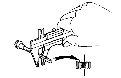 Using vernier calipers, measure the outside diameter of the bolt thread.