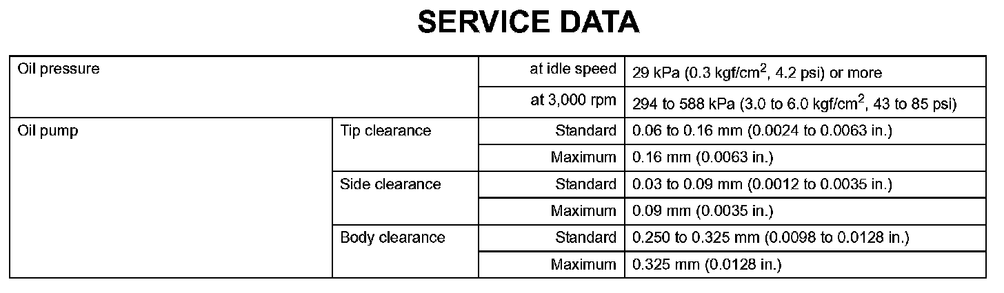 Lubrication - Service Data:
