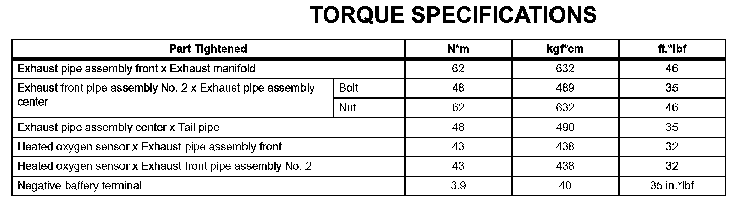 Exhaust - Torque Specifications: