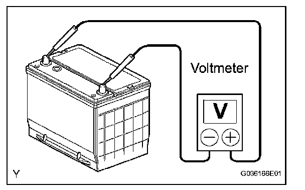 4. Using a voltmeter, measure the battery voltage between the negative (-) and positive (+) terminals of the battery.