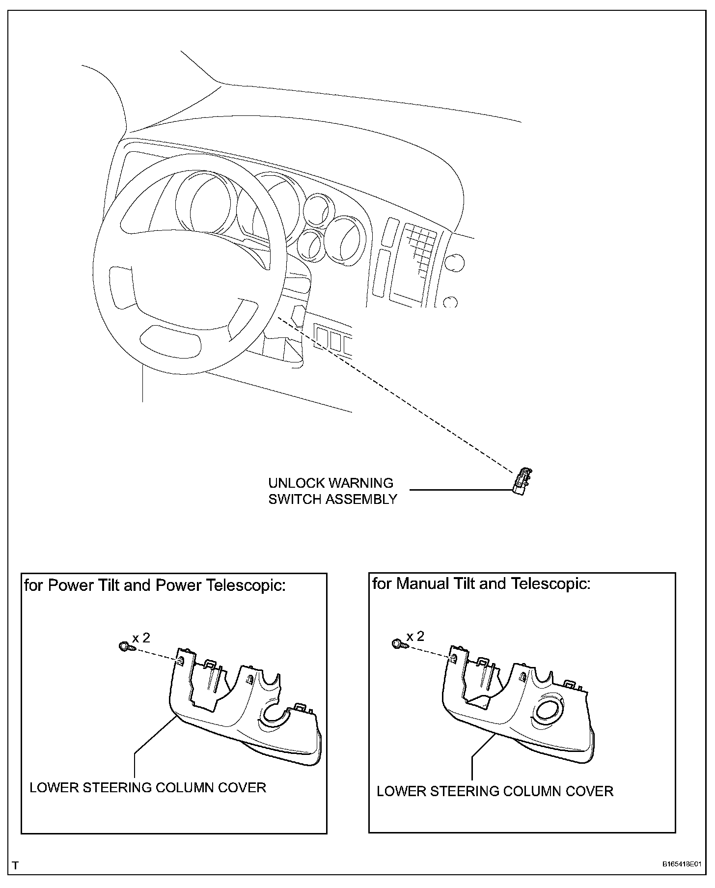 1. REMOVE LOWER STEERING COLUMN COVER (for Manual Tilt and Telescopic)