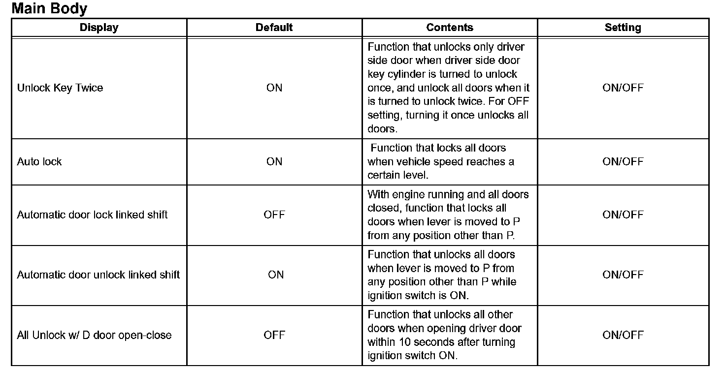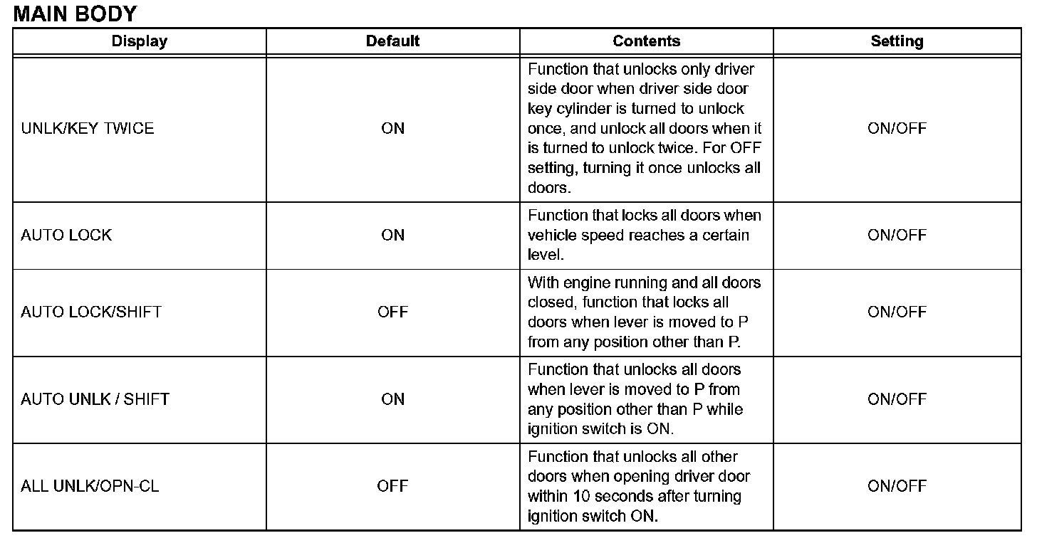 - Power door lock control system (automatic door lock function, automatic door unlock function)