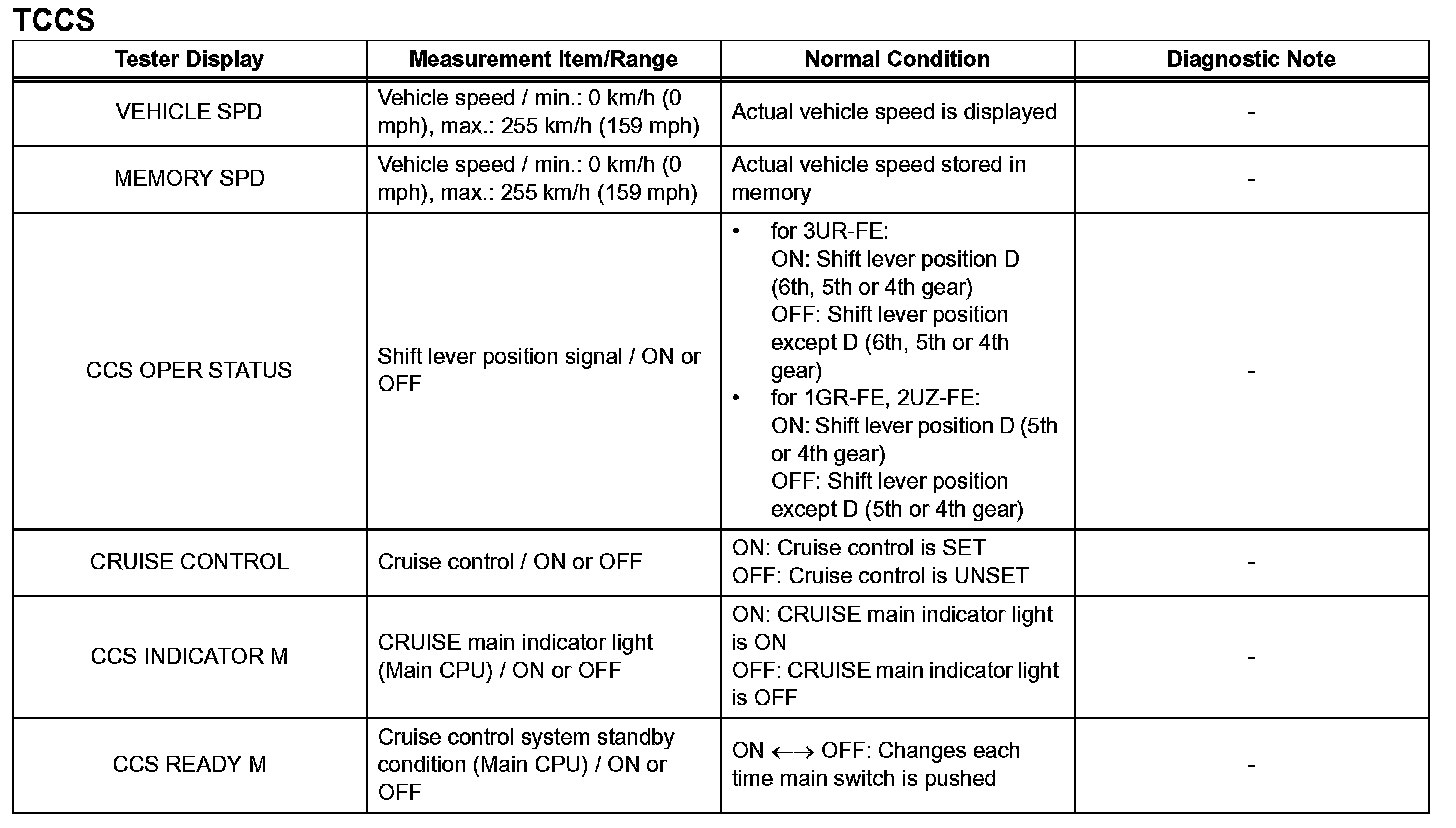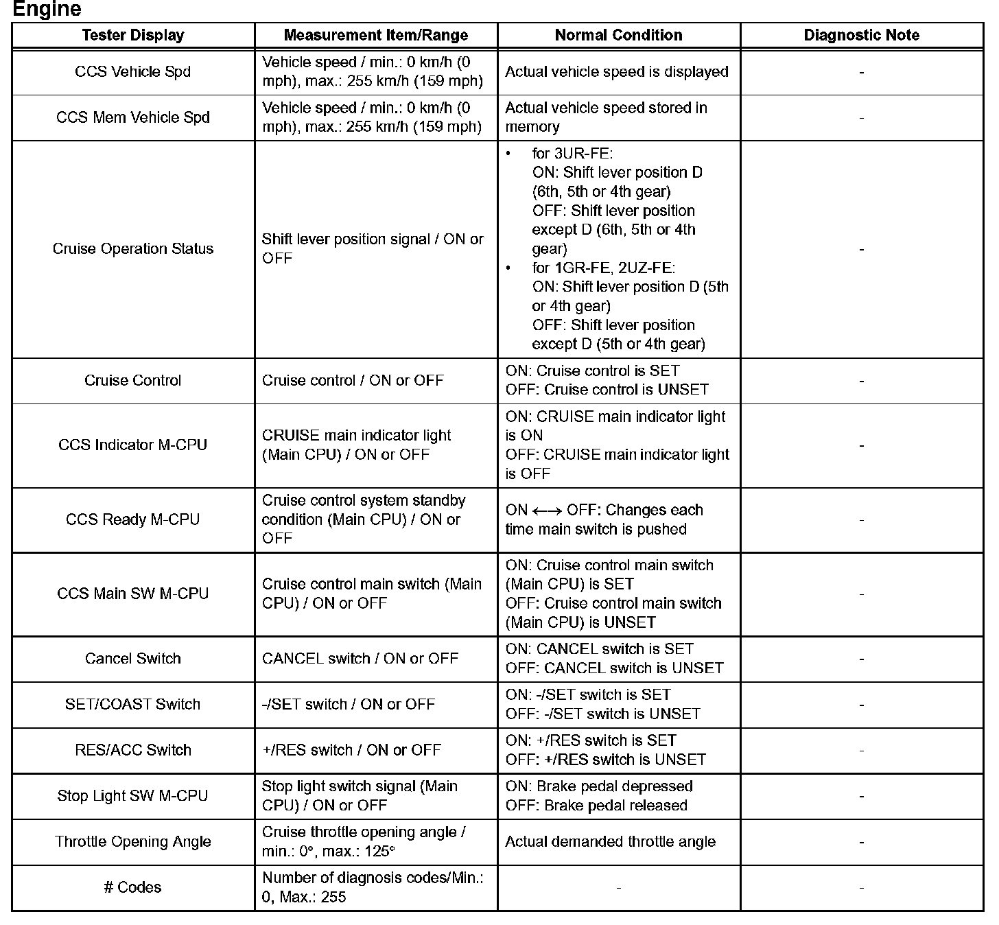 READ DATA LISTHINT: Using the intelligent tester or Techstream to read the DATA LIST allows values or states of switches, sensors, actuators and other items to be read without removing any parts. This non-intrusive inspection can be very useful because intermittent conditions or signals may be discovered before parts or wiring is disturbed. Reading the DATA LIST information early in troubleshooting is one way to save diagnostic time.