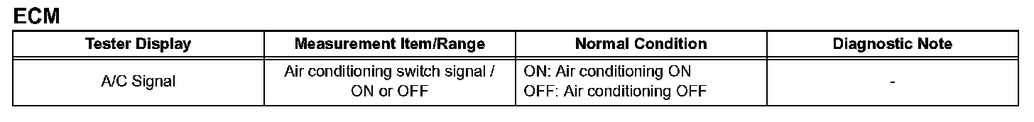 READ DATA LISTHINT: Using the intelligent tester or Techstream to read the Data List allows the values or states of switches, sensor, actuators and other items to be read without removing any parts. This non-intrusive inspection can be very useful because intermittent conditions or signals may be discovered before parts or wiring is disturbed. Reading the Data List information early in troubleshooting is one way to save diagnostic time.