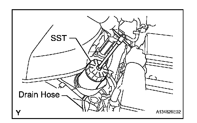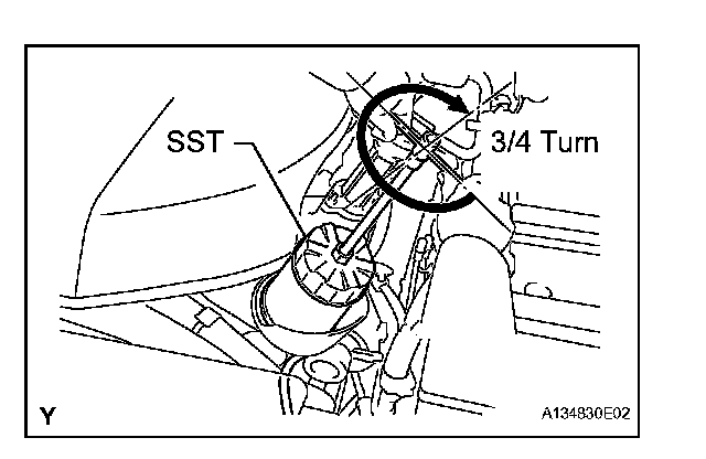 (d) Using SST, tighten the oil filter. Depending on the work space available, choose from the following.