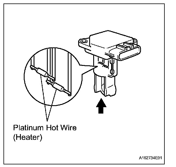 a. Perform a visual check for any foreign matter on the platinum hot wire (heater) of the mass air flow meter shown in the illustration.