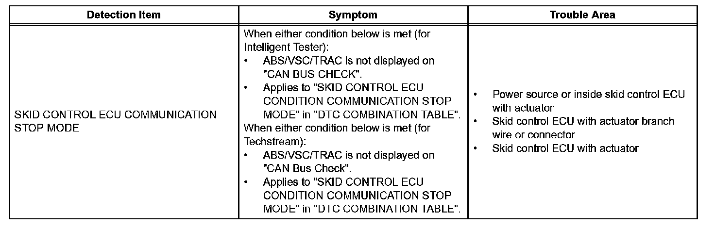 Skid Control ECU Communication Stop Mode