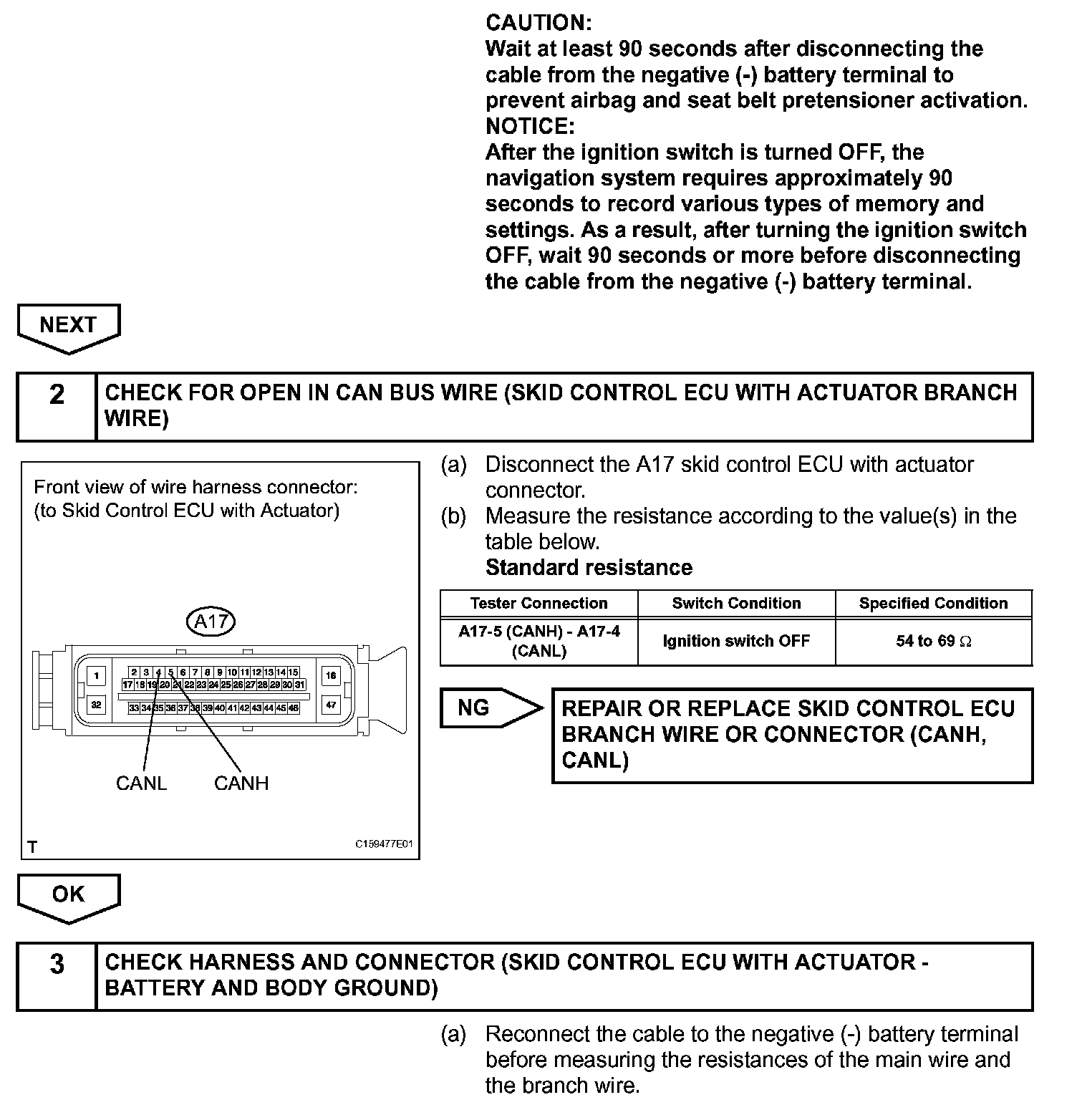 HINT: Operating the ignition switch, any switches or any doors triggers related ECU and sensor communication with the CAN, which causes resistance variation.