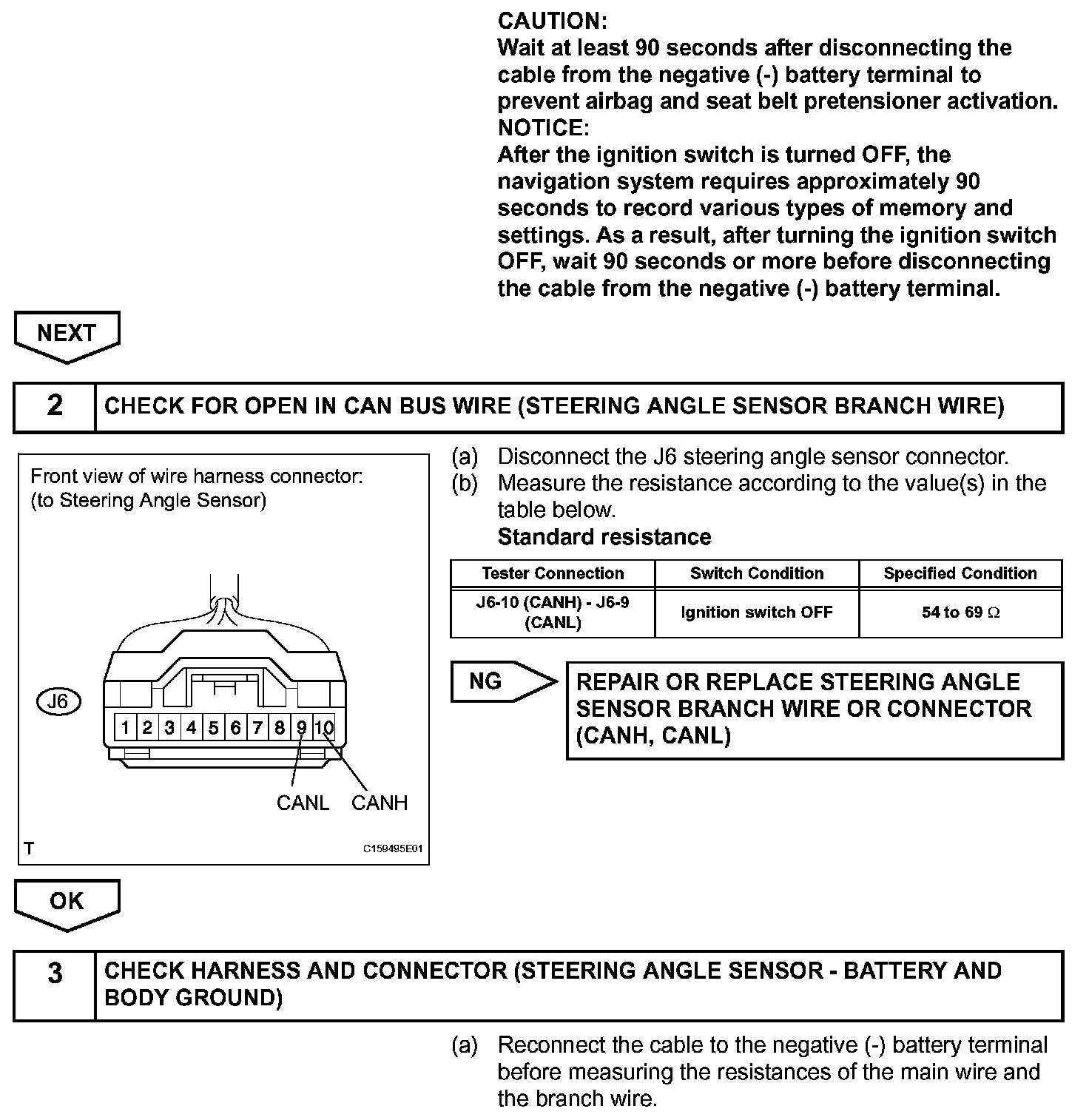 HINT: Operating the ignition switch, any switches or any doors triggers related ECU and sensor communication with the CAN, which causes resistance variation.