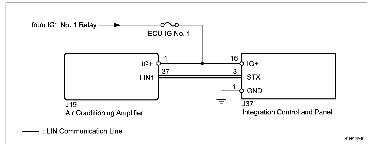 The LIN communication of the components related to the mirror heater occurs between the air conditioning amplifier (A/C ECU) and integration control and panel.