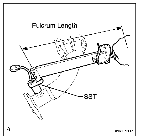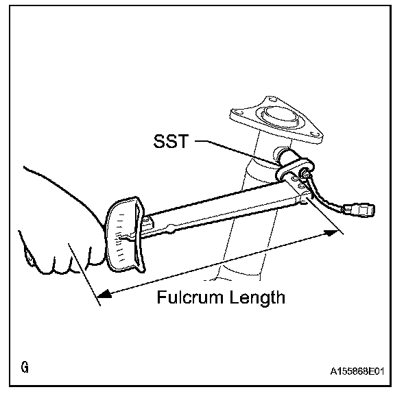 - Use a torque wrench with a fulcrum length of 30 cm (11.8 in.). If using a torque wrench with a length that is not 30 cm (11.8 in.), calculate the torque specification for the torque wrench and SST based on the "without SST" torque specification.