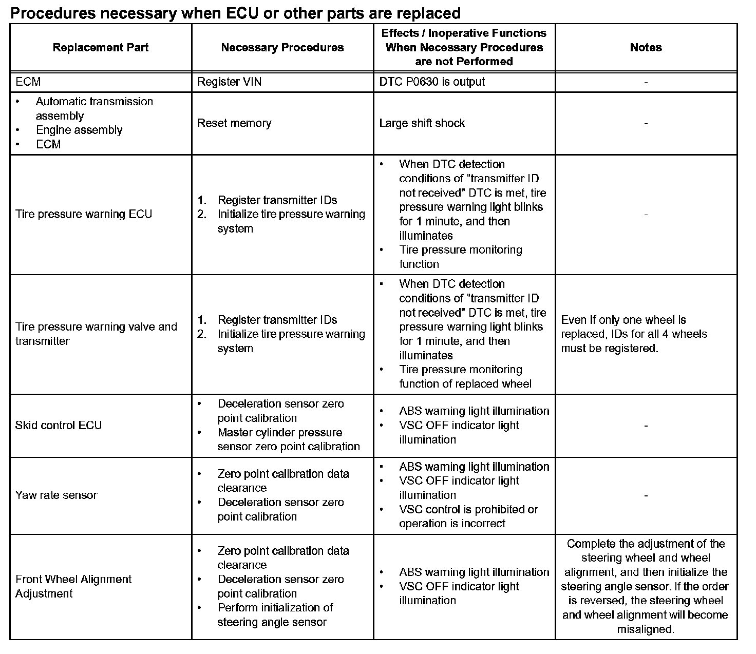 1. In case of tire pressure warning ECU replacement.