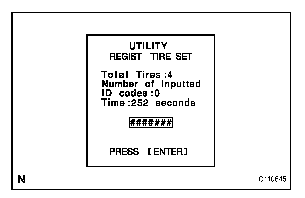 h. "UTILITY REGIST TIRE SET" screen is displayed. Then, press "ENTER".