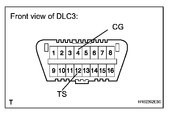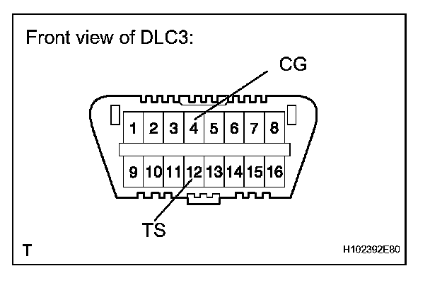 3. Using SST, connect terminals 12 (TS) and 4 (CG) of the DLC3.
