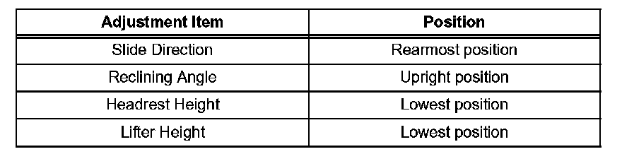 2. Adjust the seat position in accordance with the table.