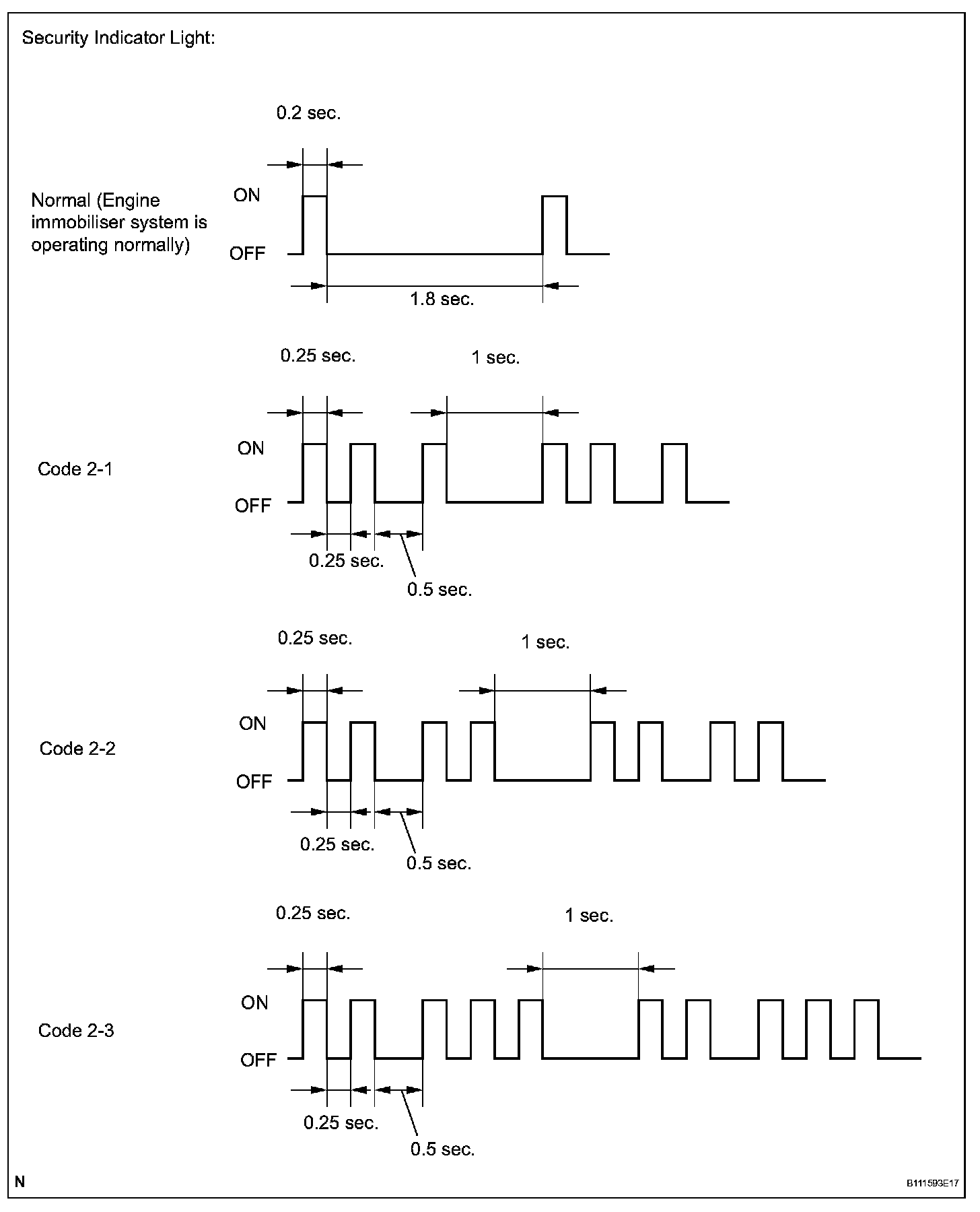 - When the engine immobilizer system is operating normally and the key is pulled out, the security indicator light blinks continuously.