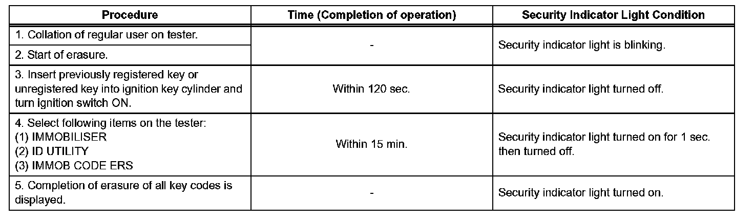 - At least one key code must be registered in the transponder key ECU in order for this mode to operate normally.
