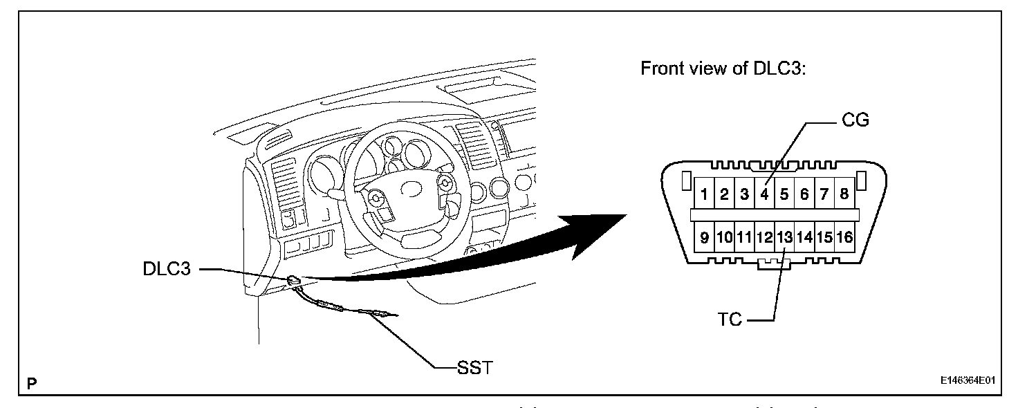 2. Using SST, connect terminals 13 (TC) and 4 (CG) of the DLC3 before inserting the key into the key cylinder.