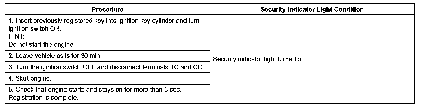 2. Follow the instructions on the intelligent tester or Techstream screen to end the new key code registration mode.