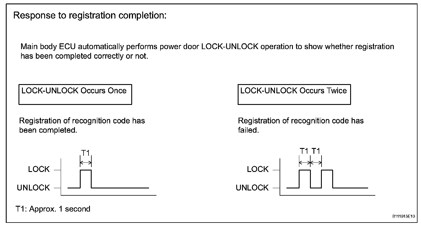 - If the LOCK-UNLOCK operation occurs twice, the registration of the recognition code has failed. Perform the registration procedures again from the beginning.
