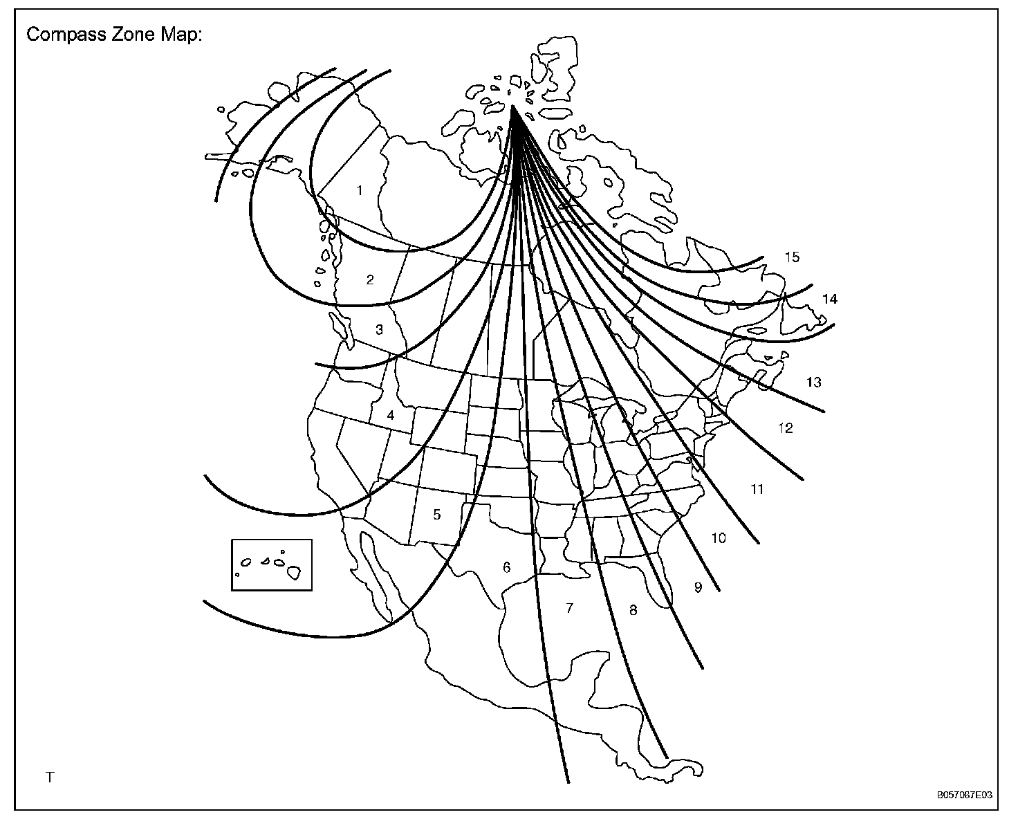 b. The displayed number increases +1 every time the compass switch is pressed. Referring to the map, check the number for the area where the vehicle will be used and set the zone number.