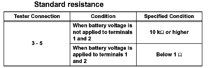 If the result is not as specified, replace the relay.