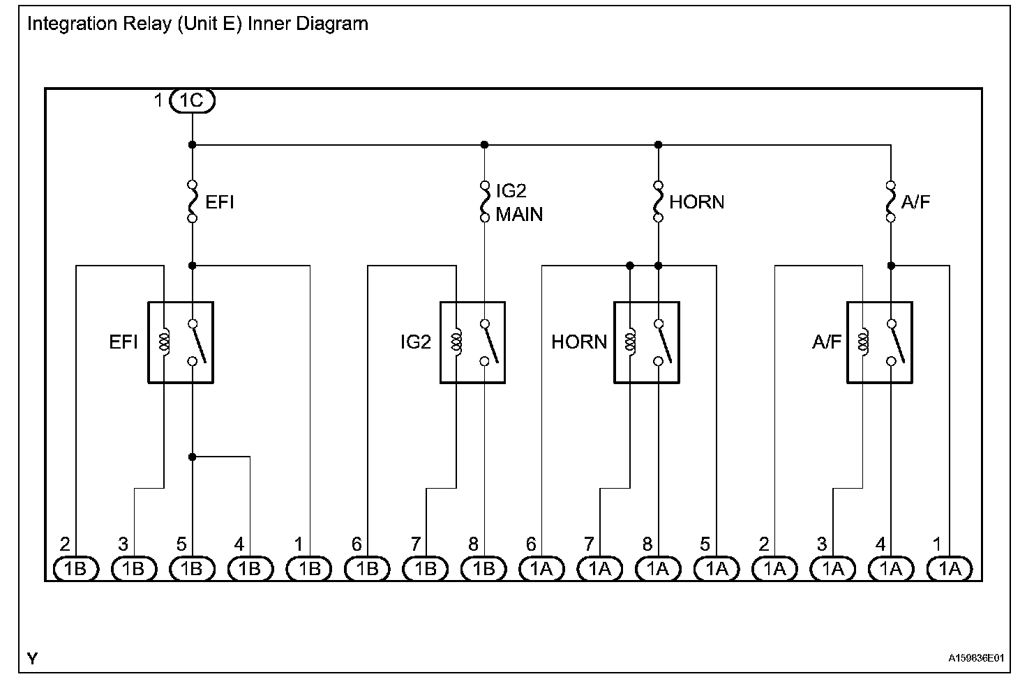 - Some relays are built into the integration relay (unit E). The integration relay cannot be disassembled. If there is a malfunction in the circuit of the integration relay, replace the integration relay.