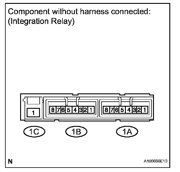 - The internal circuit of the integration relay is as shown in the illustration. Inspect the integration relay using the following procedures.
