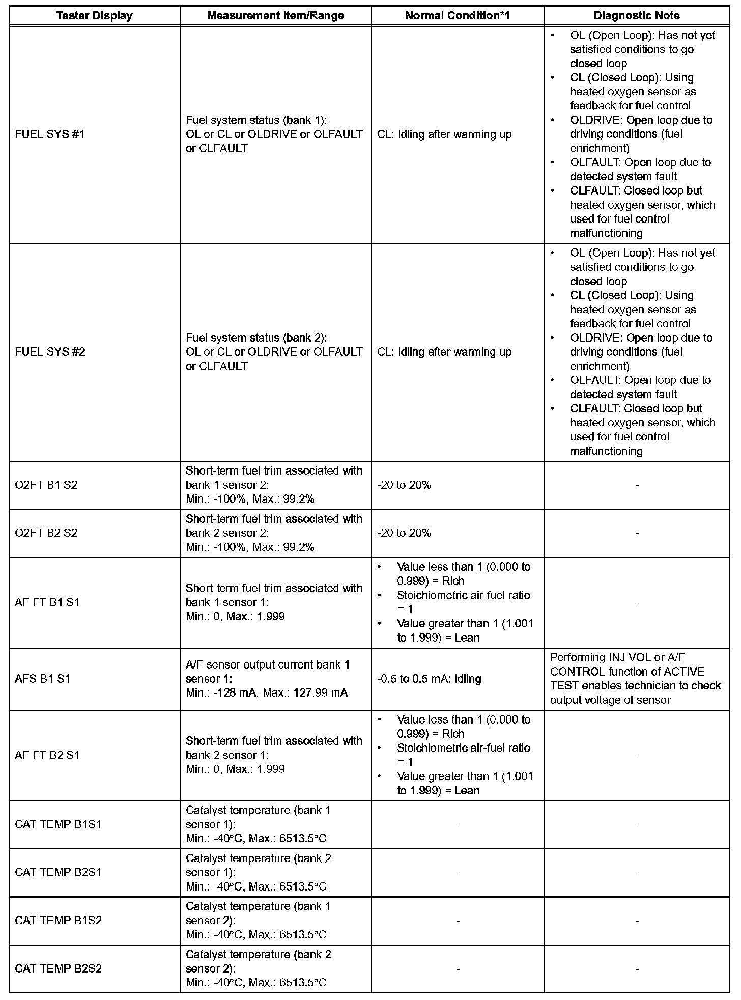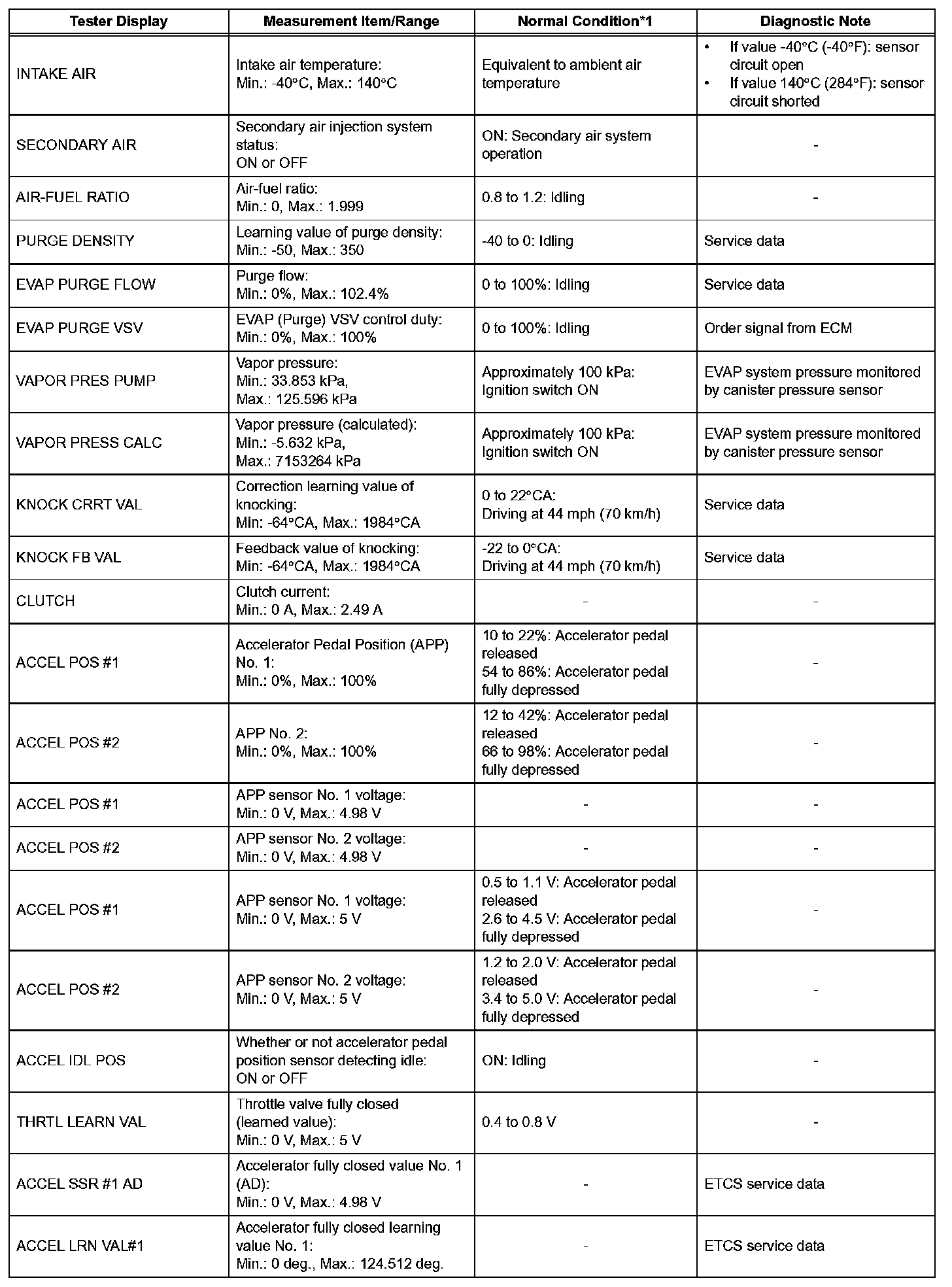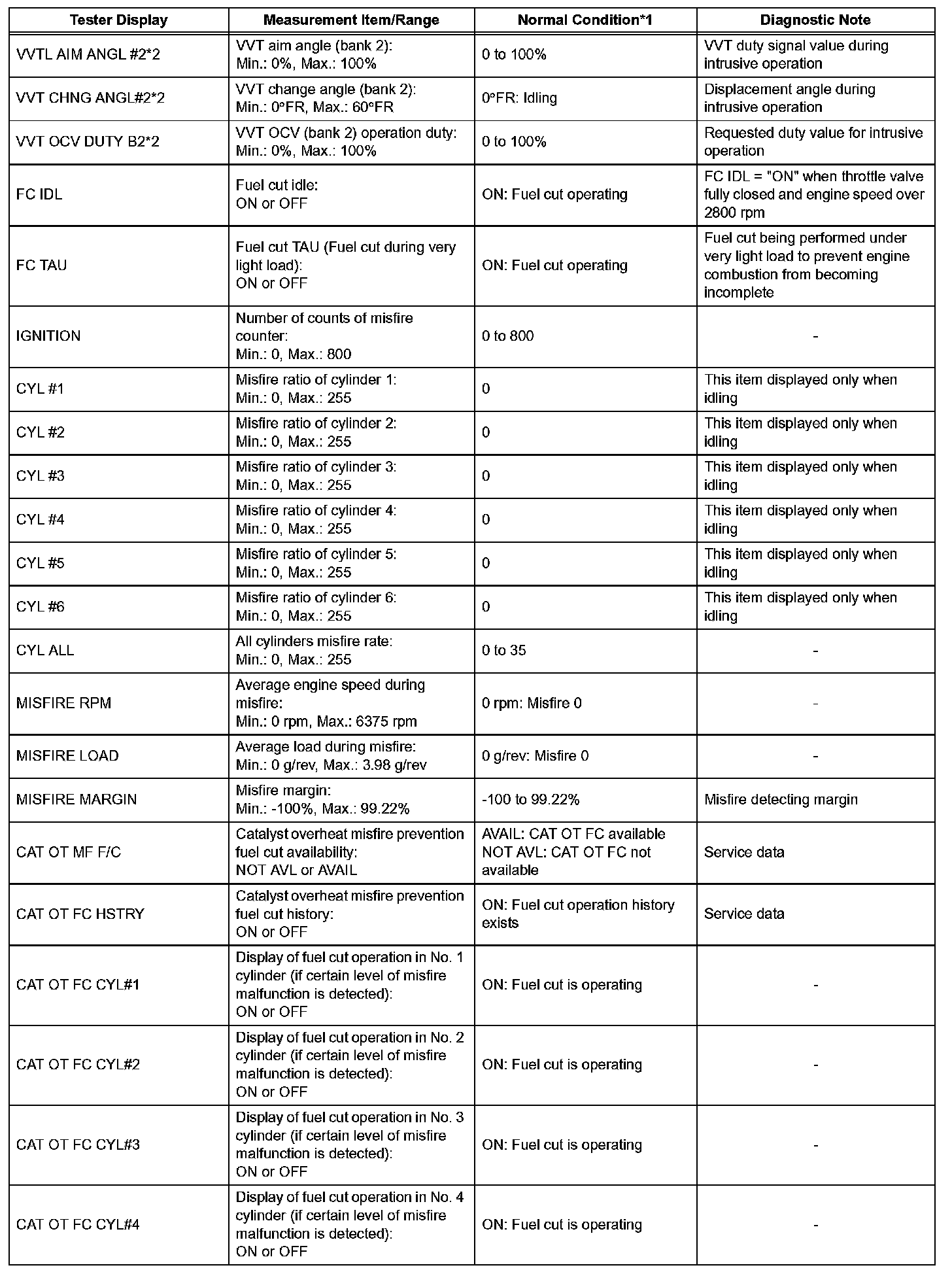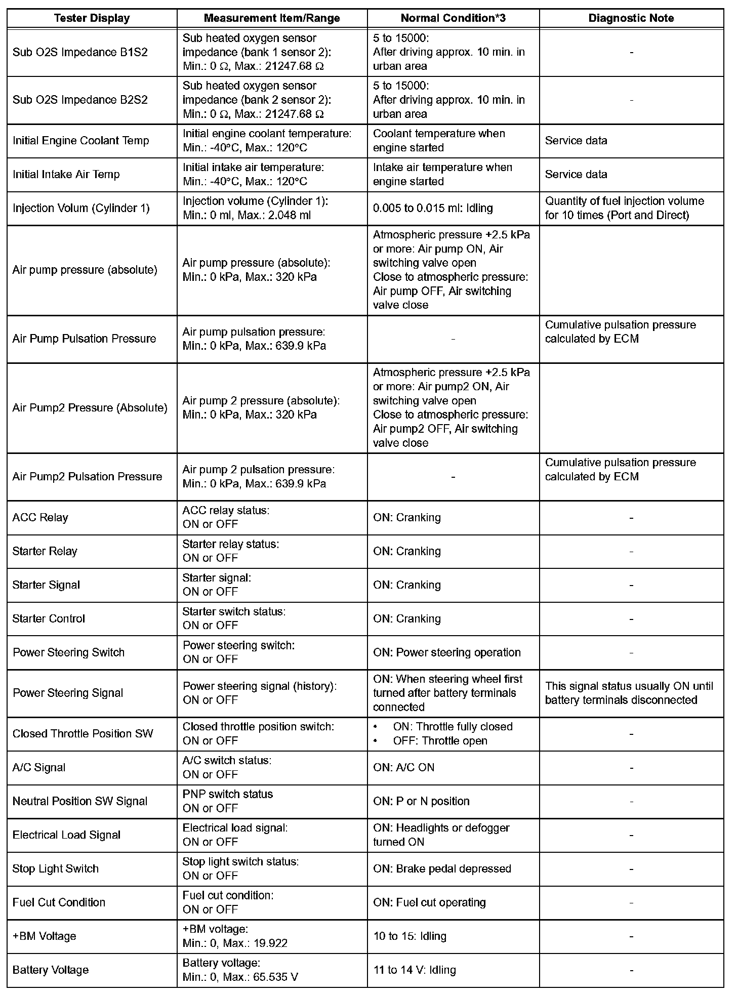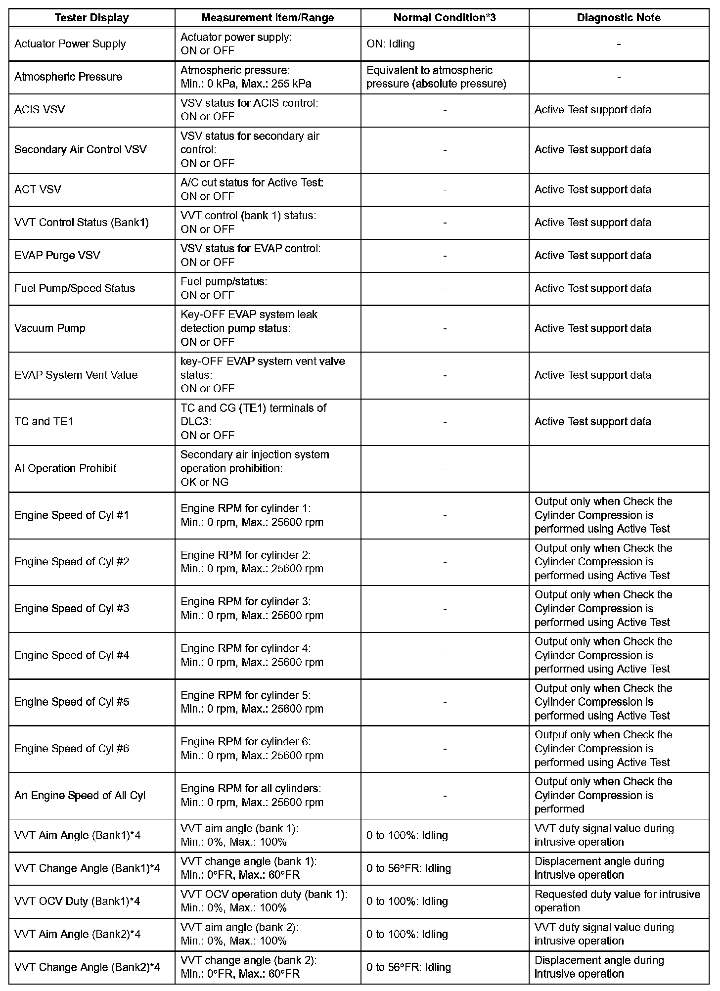 DATA LISTHINT: Using the intelligent tester or Techstream to read the Data List allows the values or states of switches, sensors, actuators and other items to be read without removing any parts. This non-intrusive inspection can be very useful because intermittent conditions or signals may be discovered before parts or wiring is disturbed. Reading the Data List information early in troubleshooting is one way to save diagnostic time