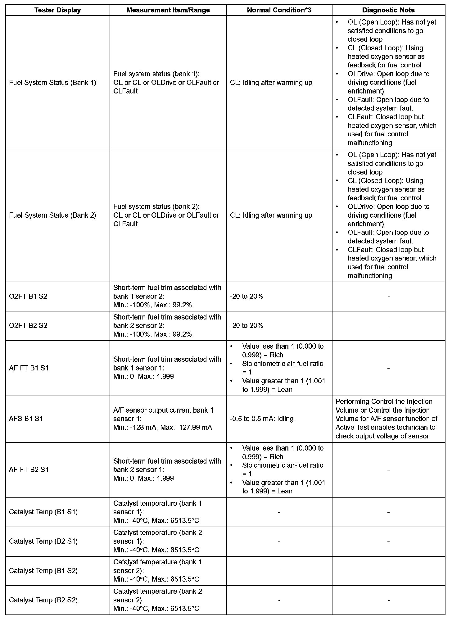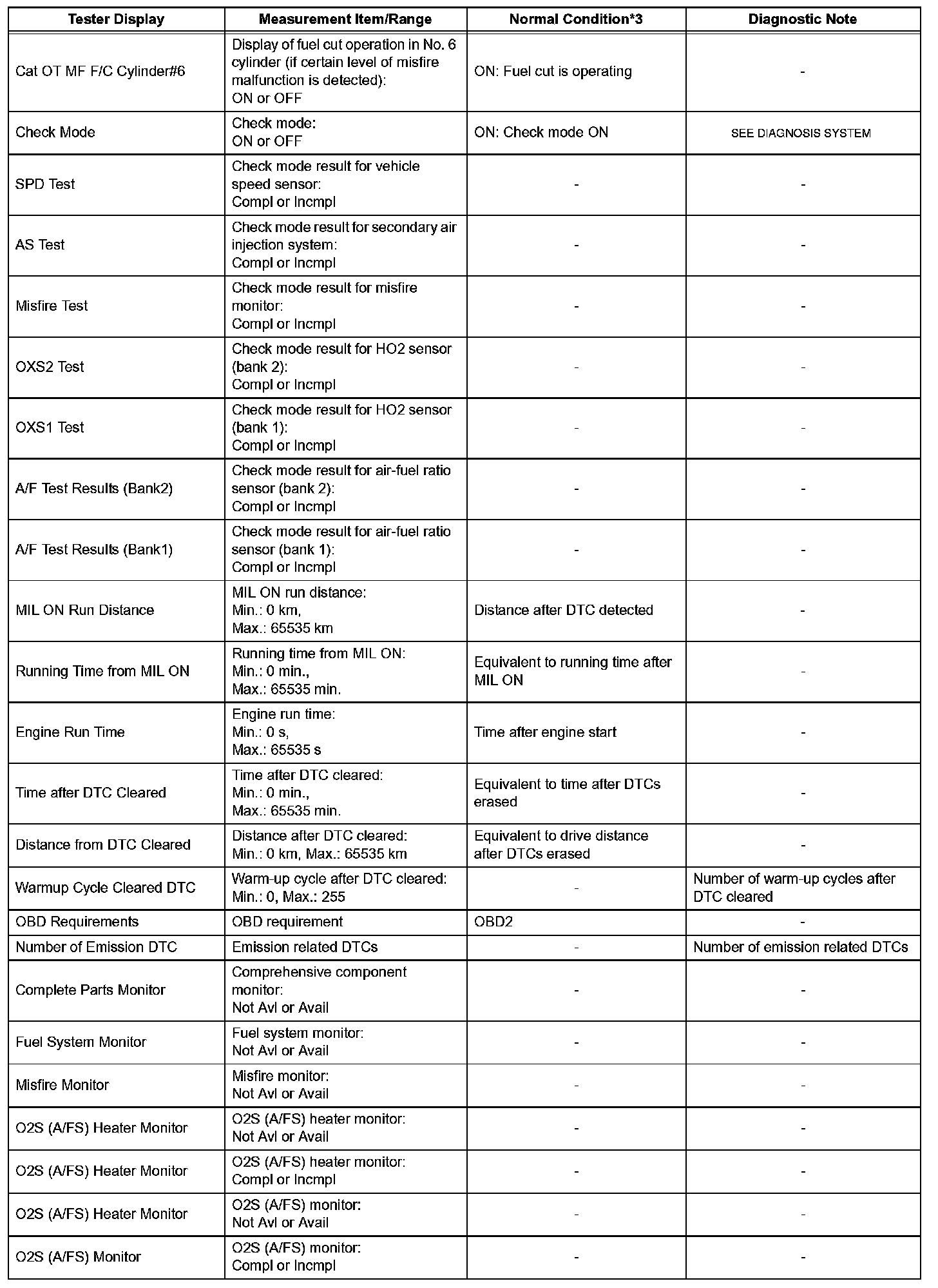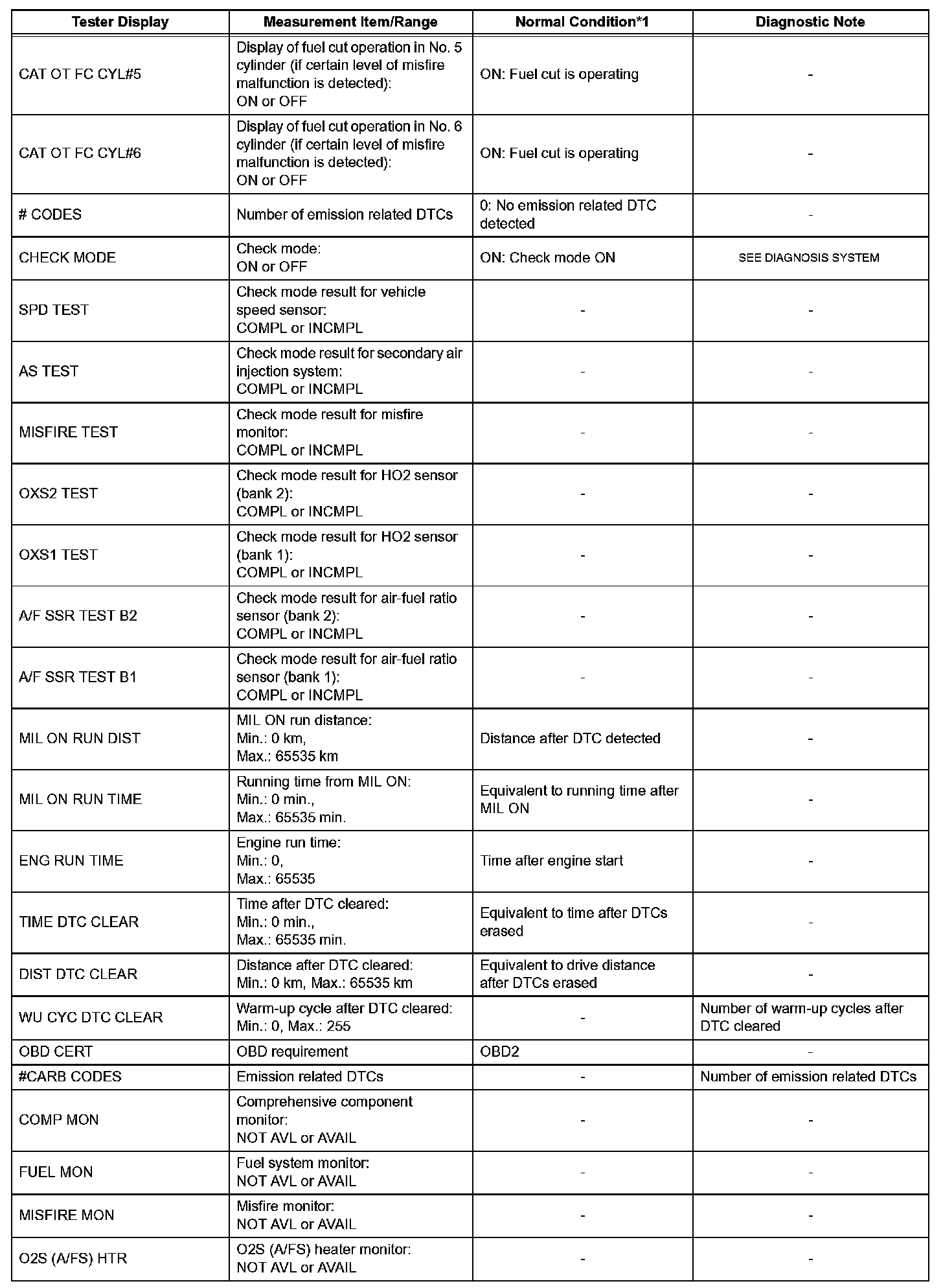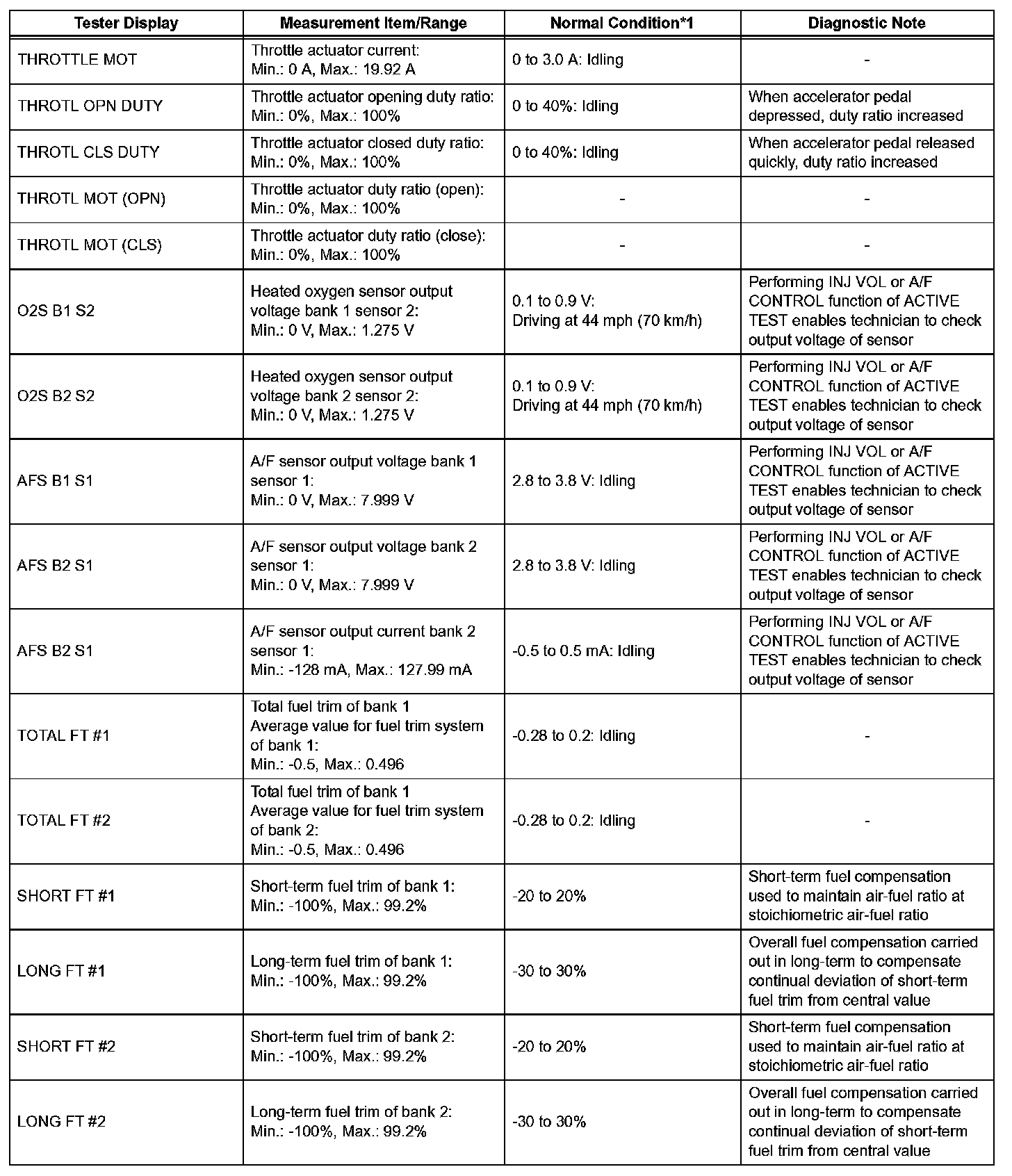 DATA LISTHINT: Using the intelligent tester or Techstream to read the Data List allows the values or states of switches, sensors, actuators and other items to be read without removing any parts. This non-intrusive inspection can be very useful because intermittent conditions or signals may be discovered before parts or wiring is disturbed. Reading the Data List information early in troubleshooting is one way to save diagnostic time