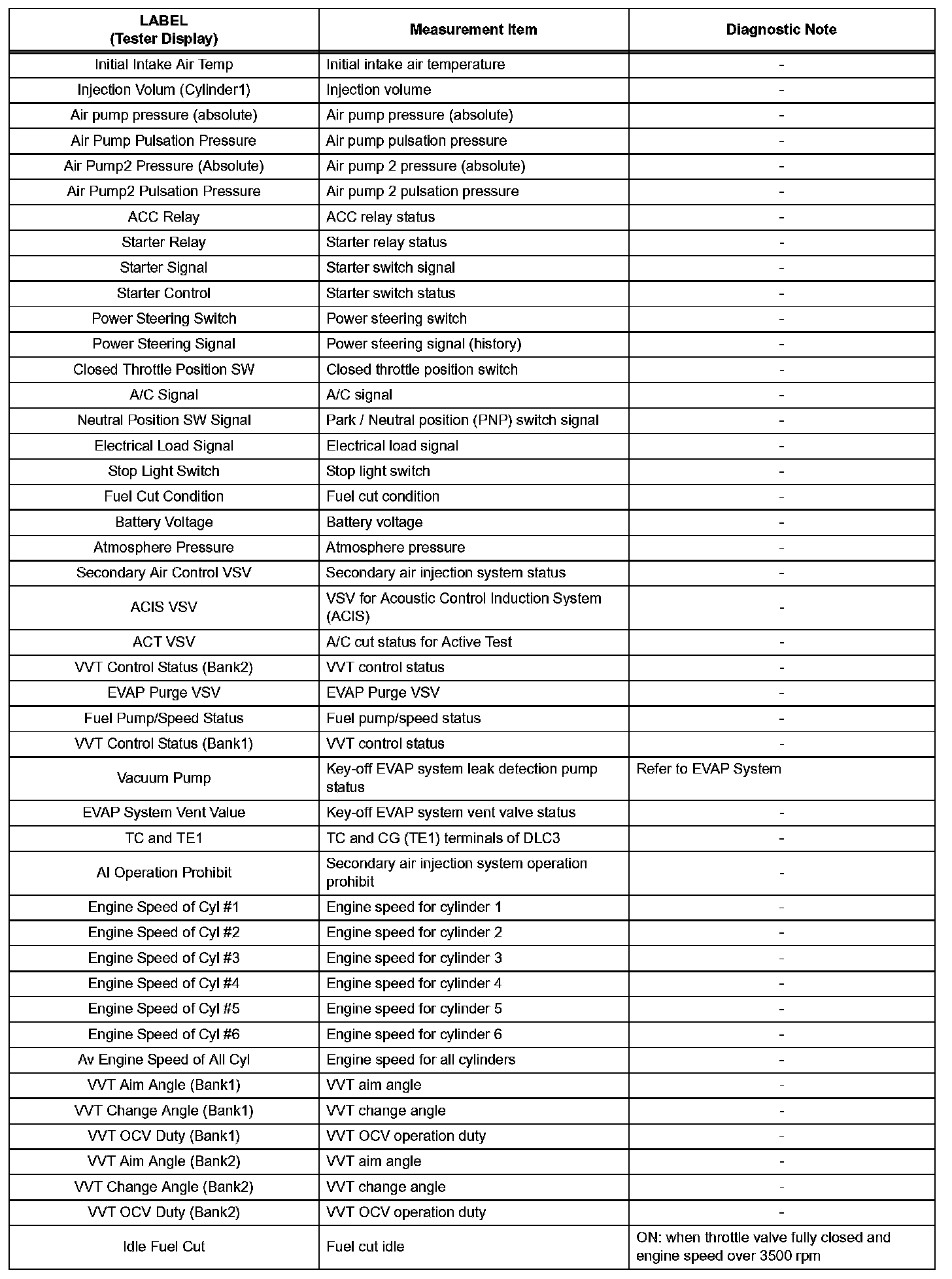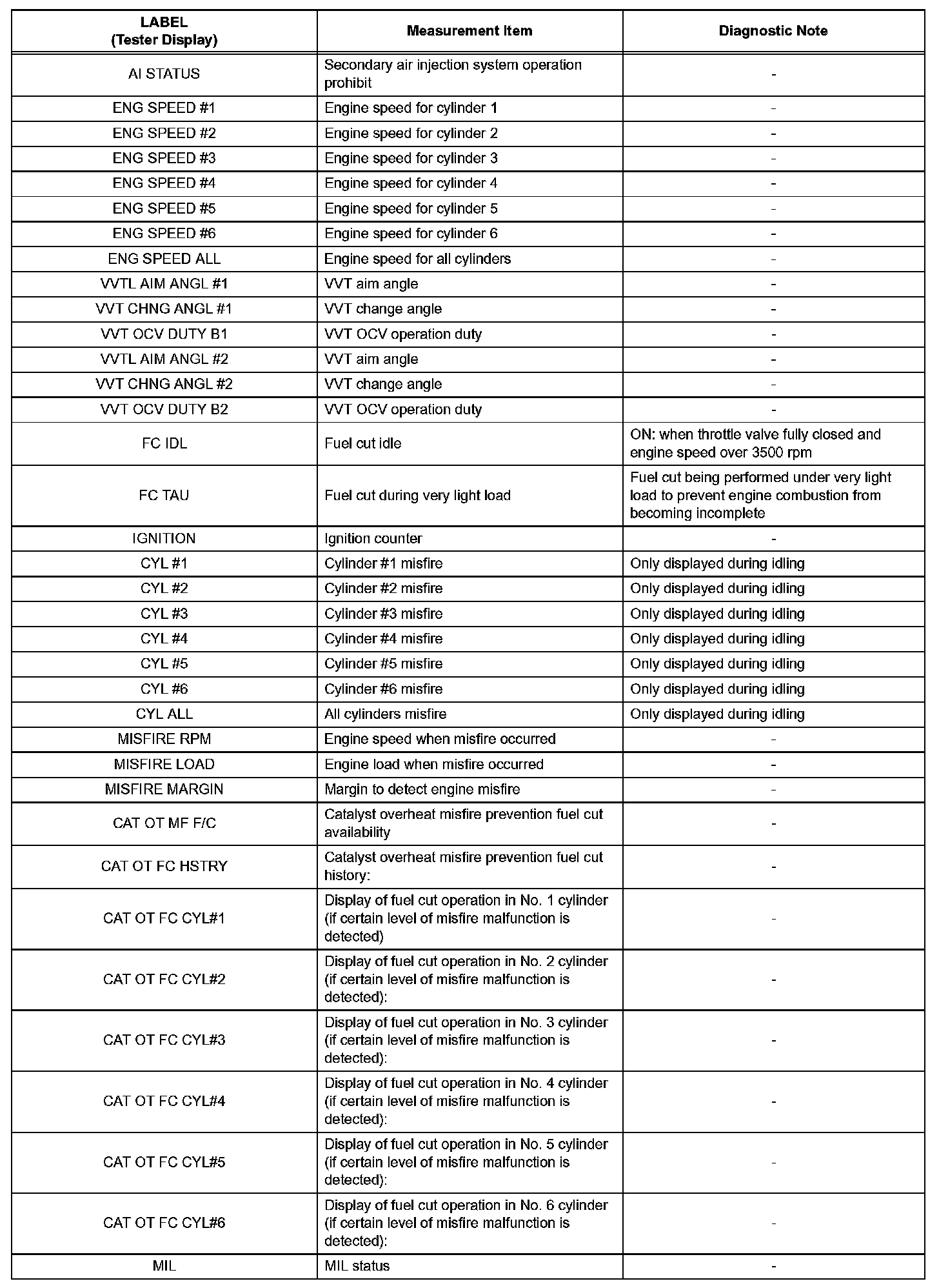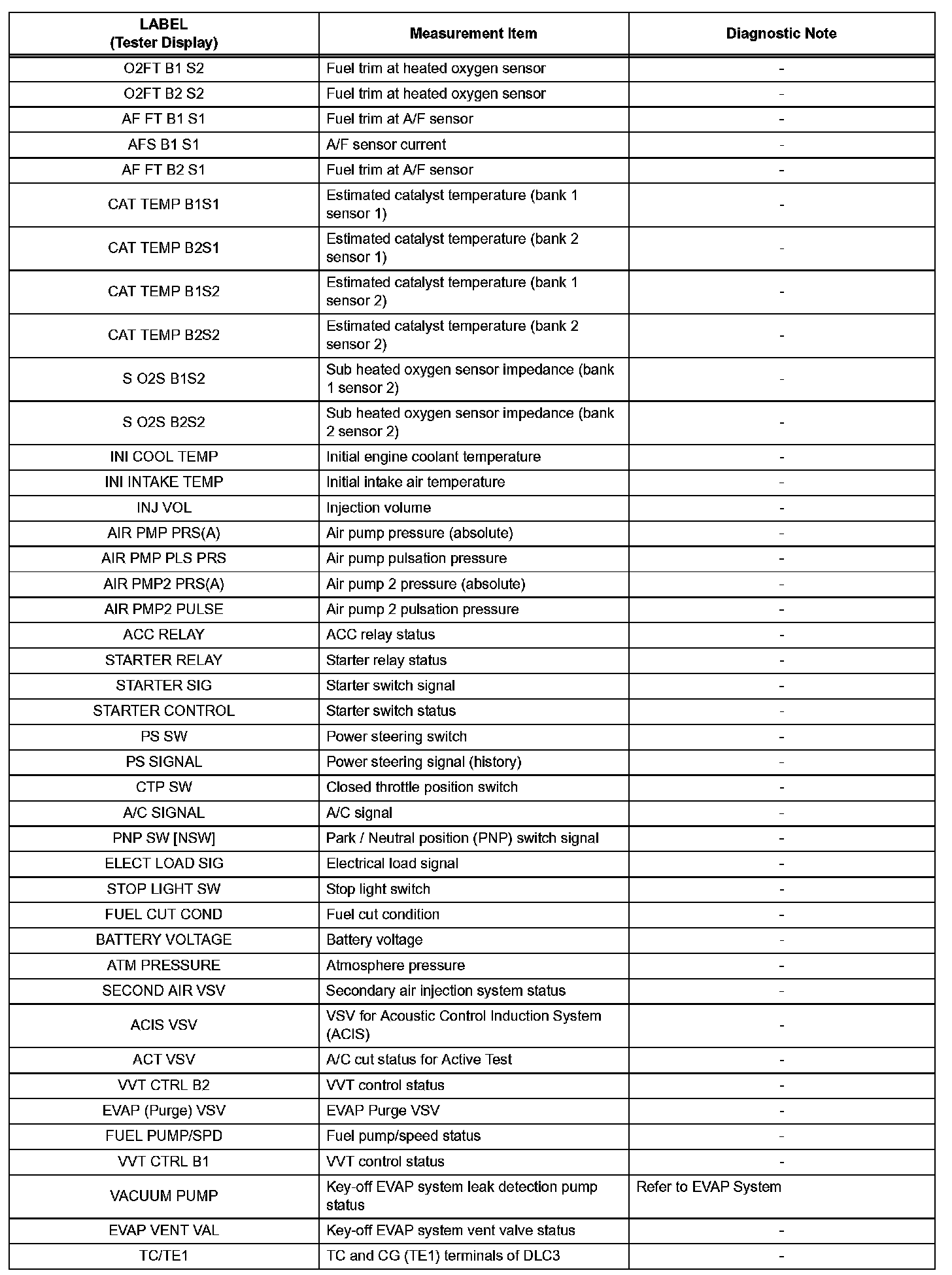 3. LIST OF FREEZE FRAME DATA (Using Techstream)