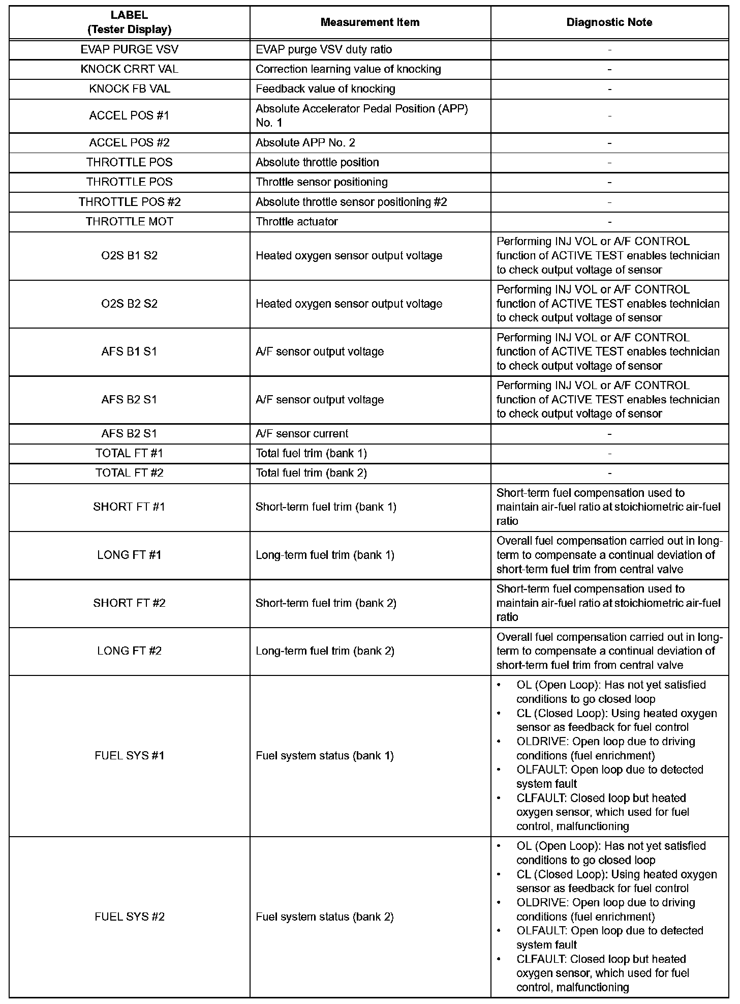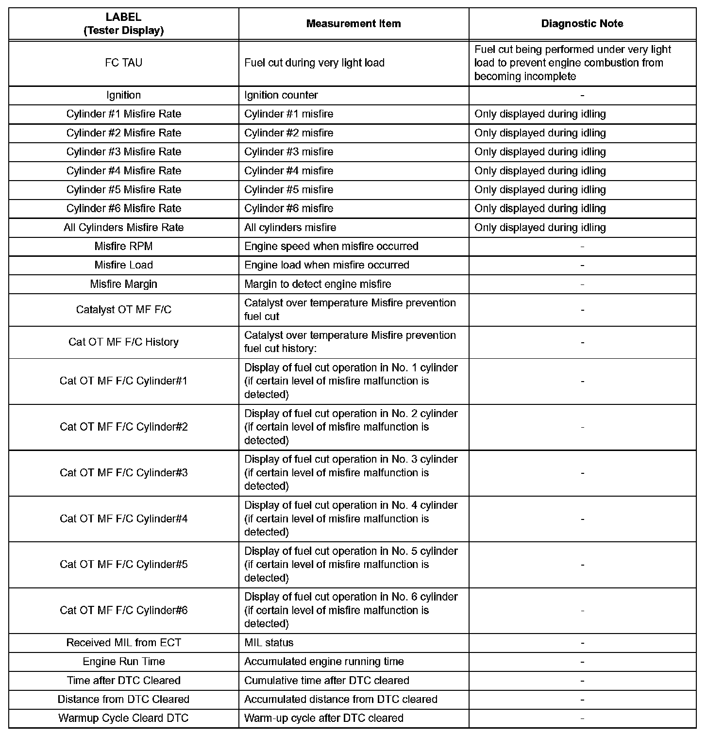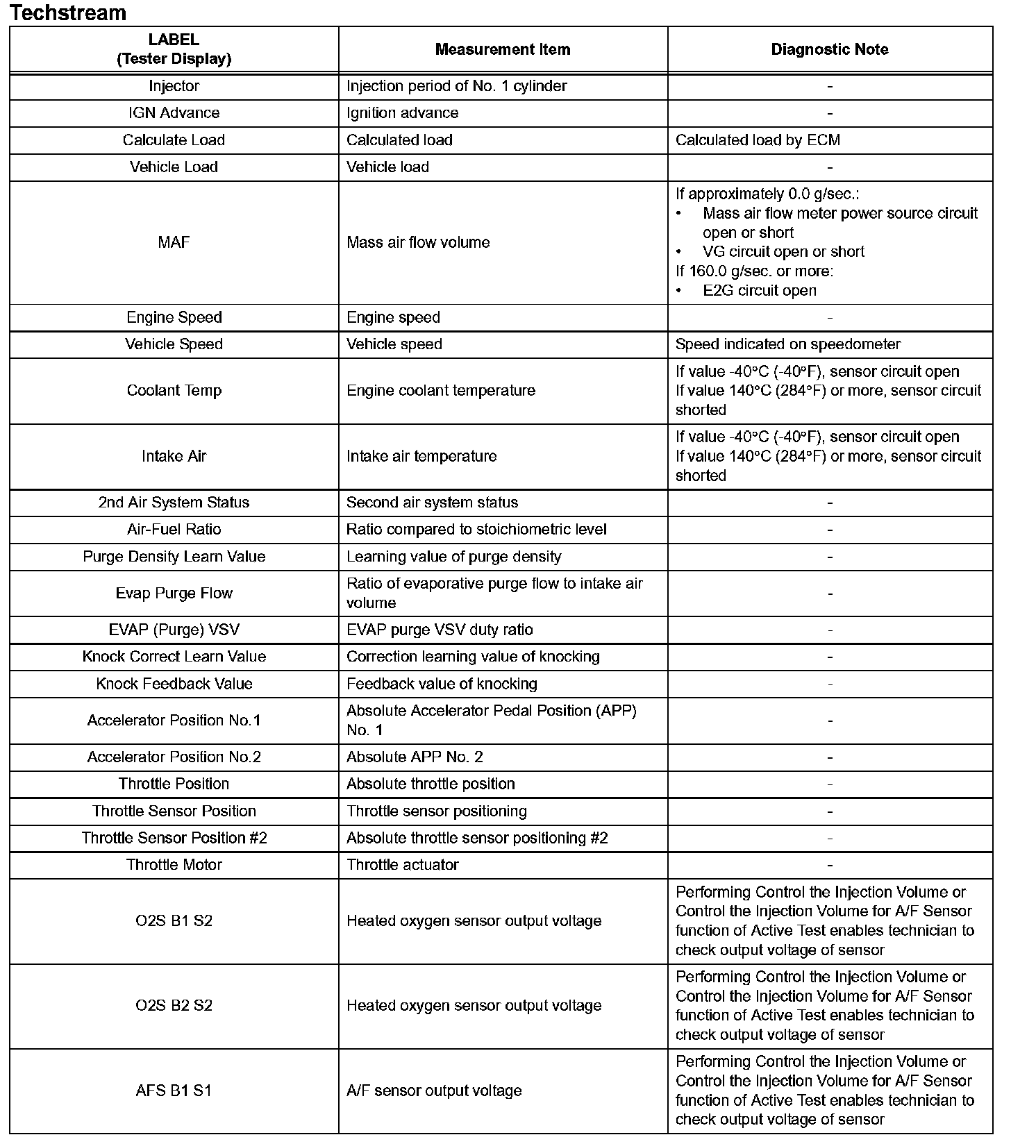 3. LIST OF FREEZE FRAME DATA (Using Techstream)