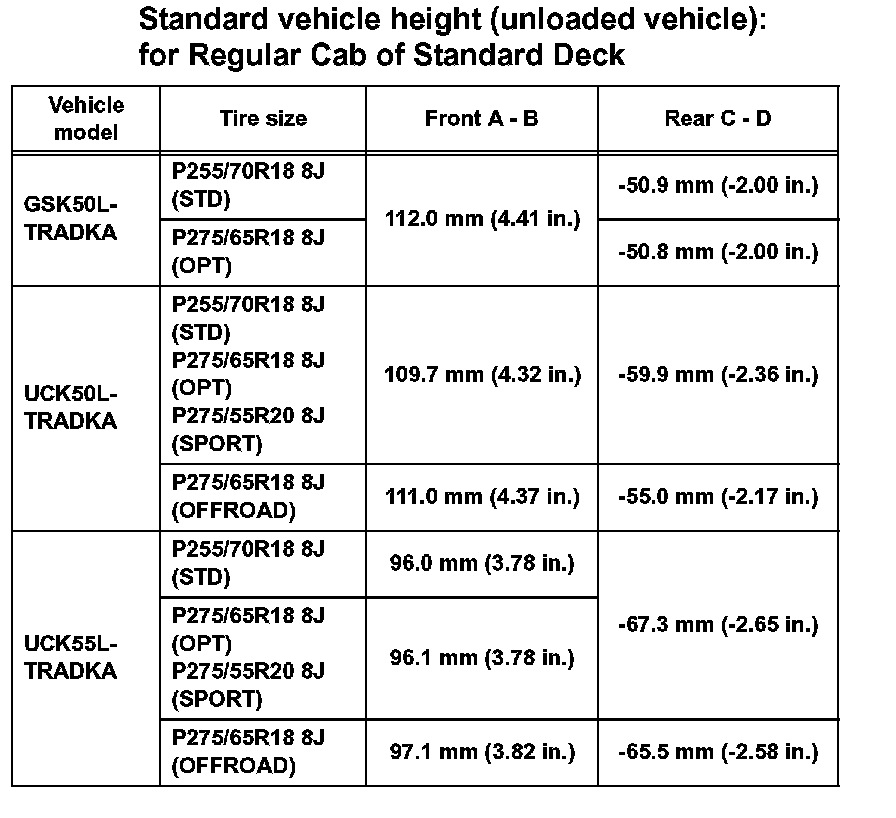 VEHICLE HEIGHTStandard vehicle height (unloaded vehicle): for Regular Cab of Standard Deck (Part 1):