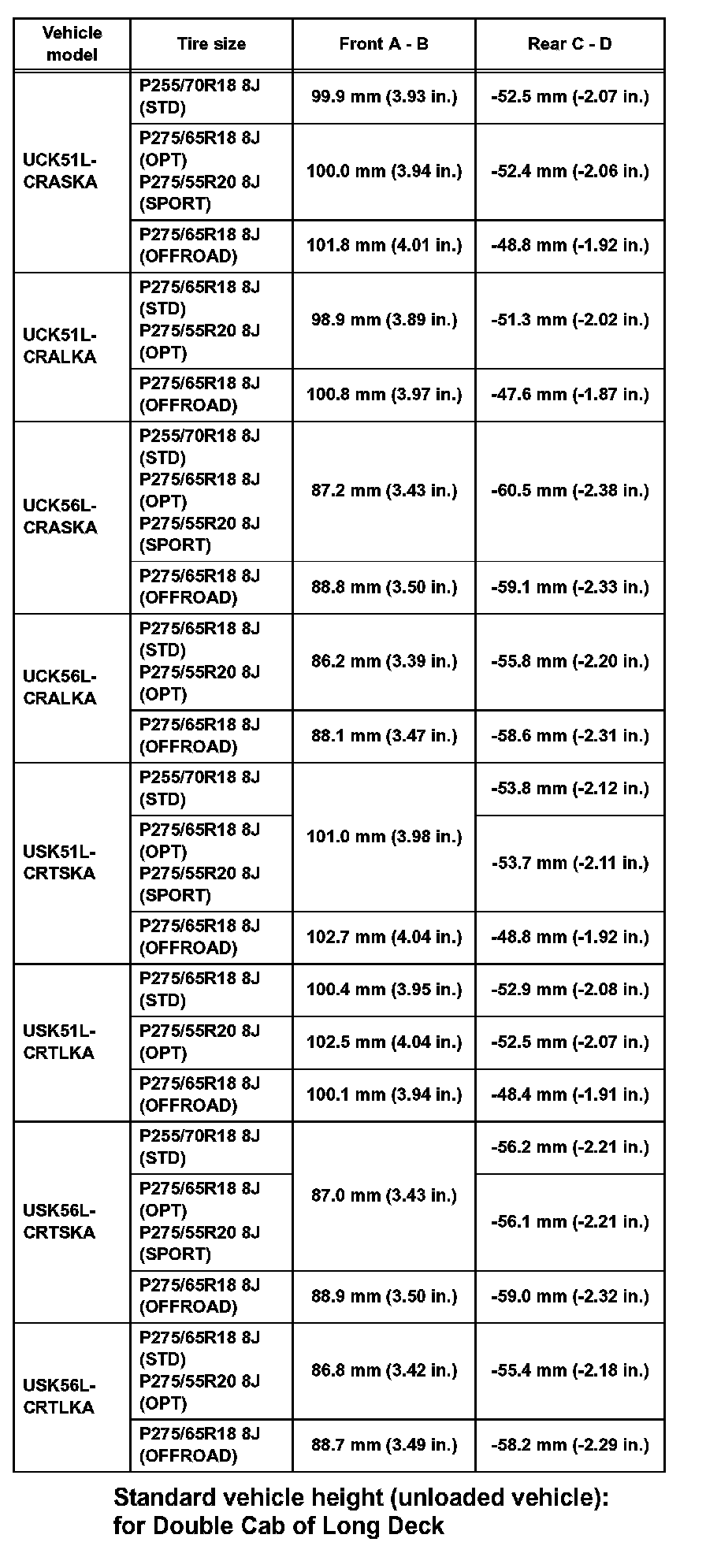 Standard vehicle height (unloaded vehicle): for Double Cab of Standard Deck (Part 2):