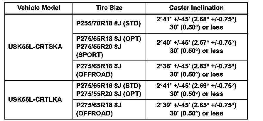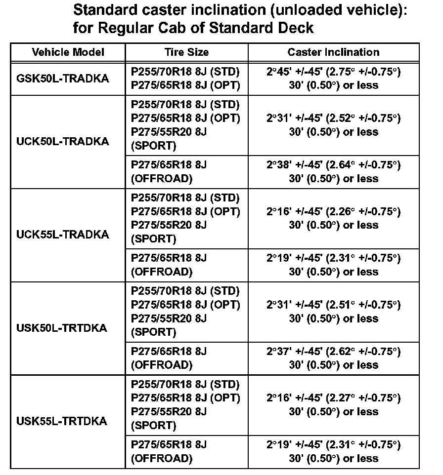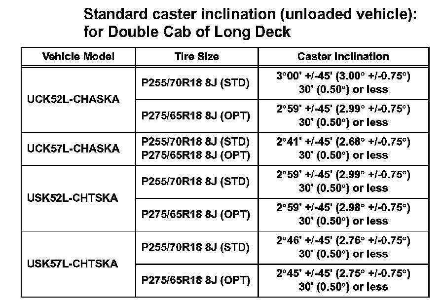Standard caster inclination (unloaded vehicle): for Double Cab of Standard Deck (Part 2):