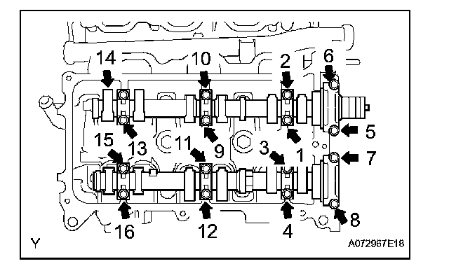 Camshaft bearing cap x Cylinder head (cylinder head LH and RH)