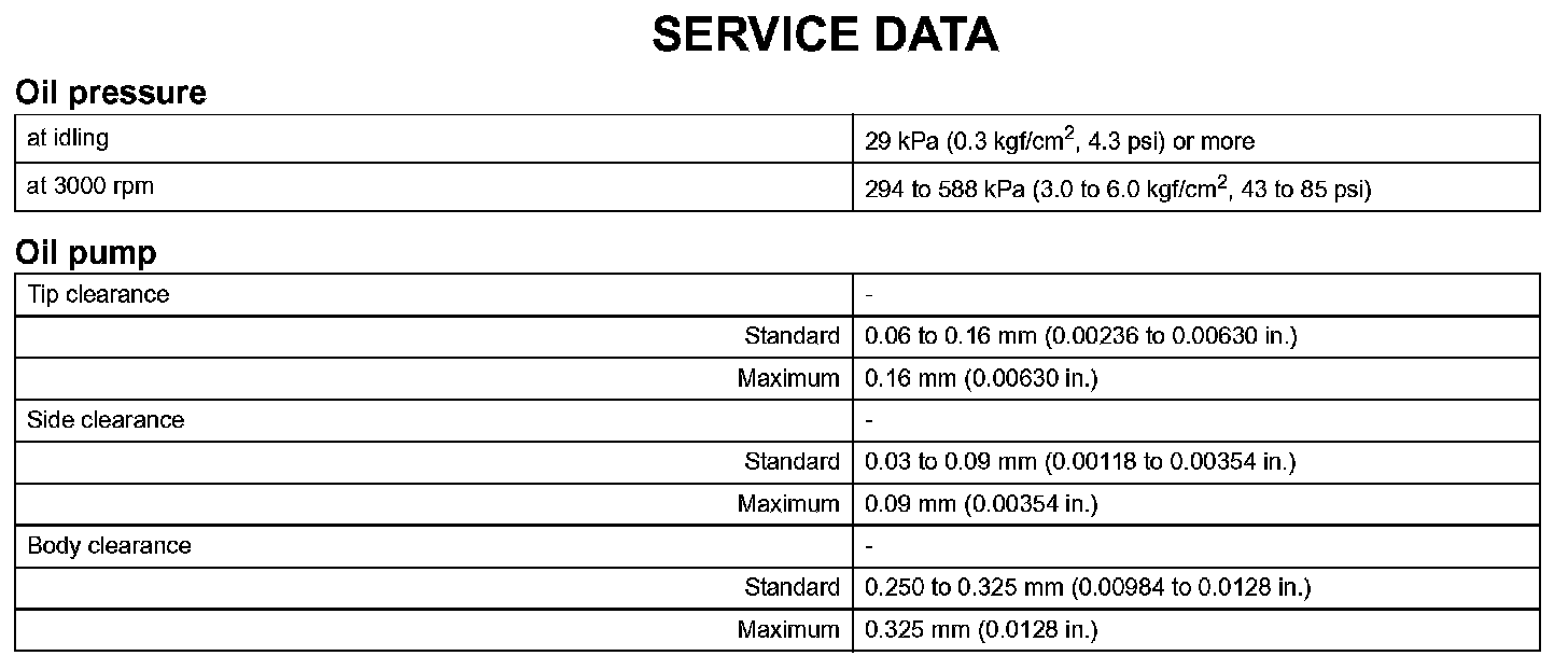 Lubrication - Service Data: