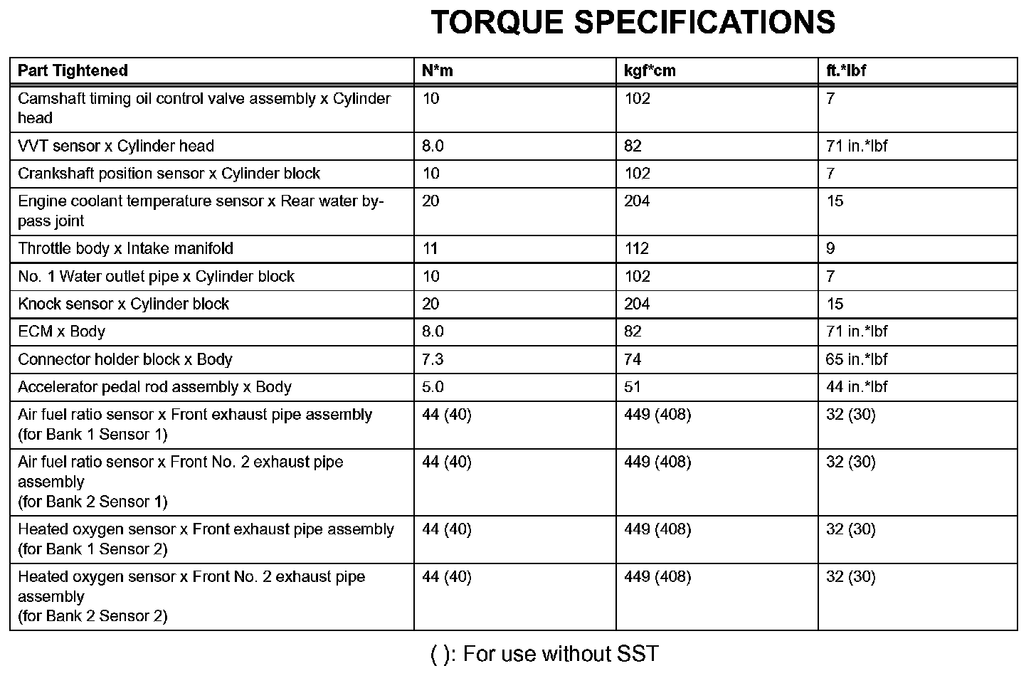 Engine Control System - Torque Specifications: