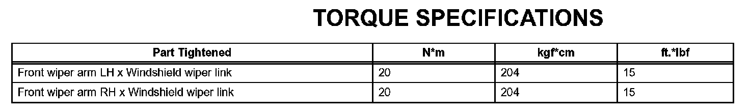 Windshield / Windowglass - Torque Specifications: