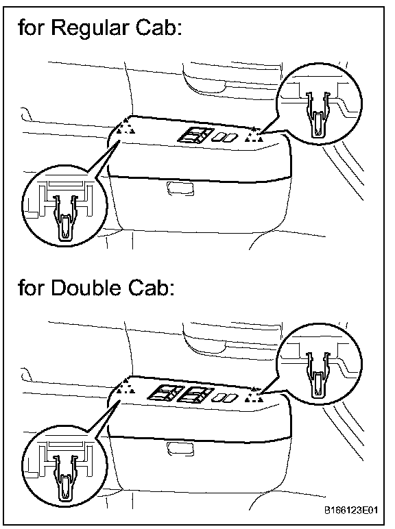 b. Attach the 2 clips to install the front upper armrest base panel LH.