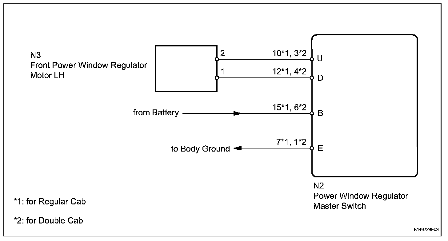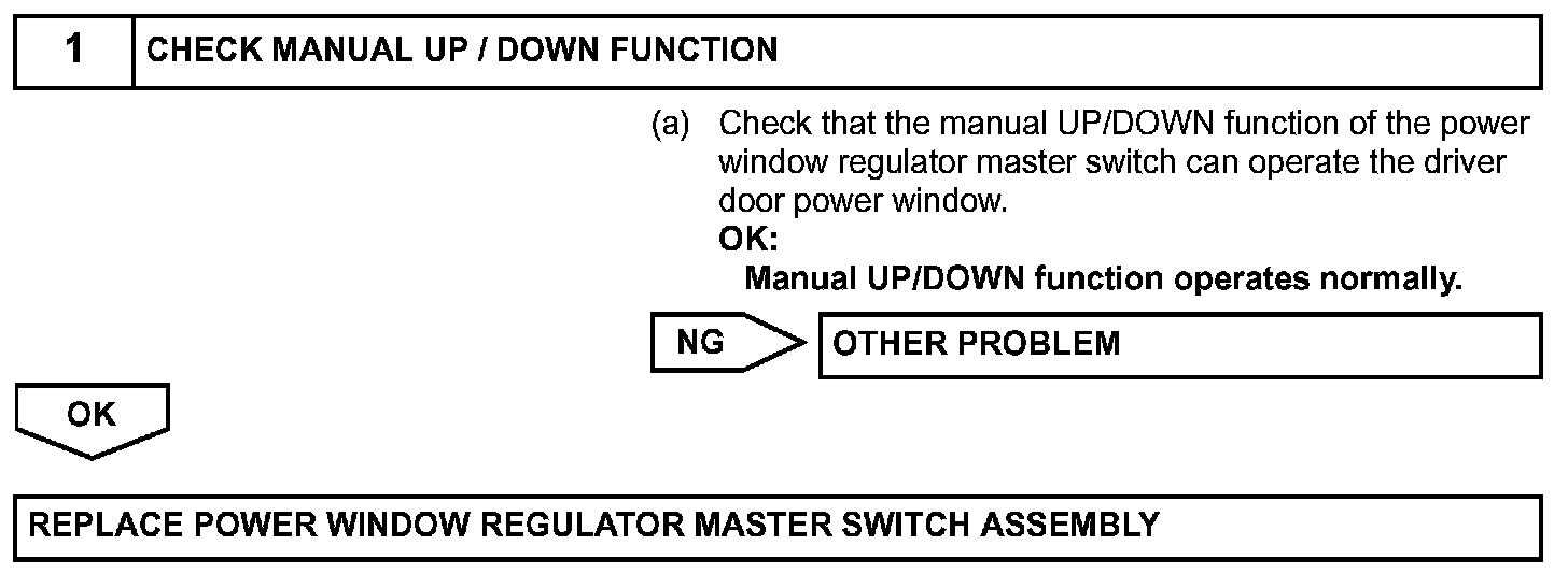 - The wiring between the power window regulator master switch and the driver side power window regulator motor is open or shorted.
