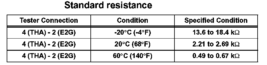 1. Measure the resistance according to the value(s) in the table. Standard resistance