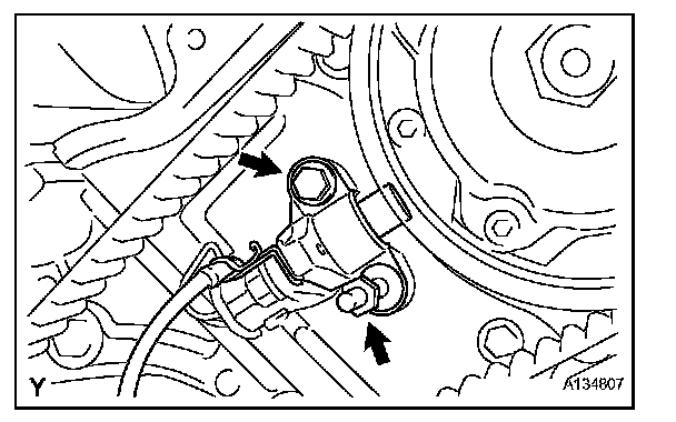a. Remove the bolt, stud bolt and camshaft position sensor.