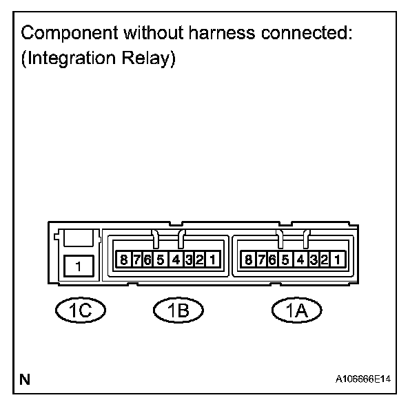 - The internal circuit of the integration relay is as shown in the illustration. Inspect the integration relay using the following procedures.