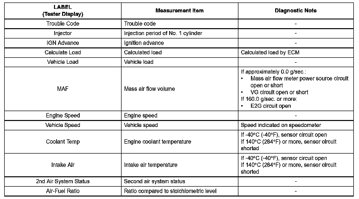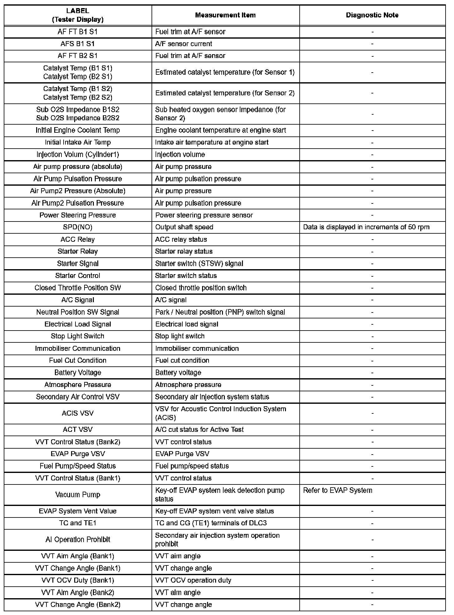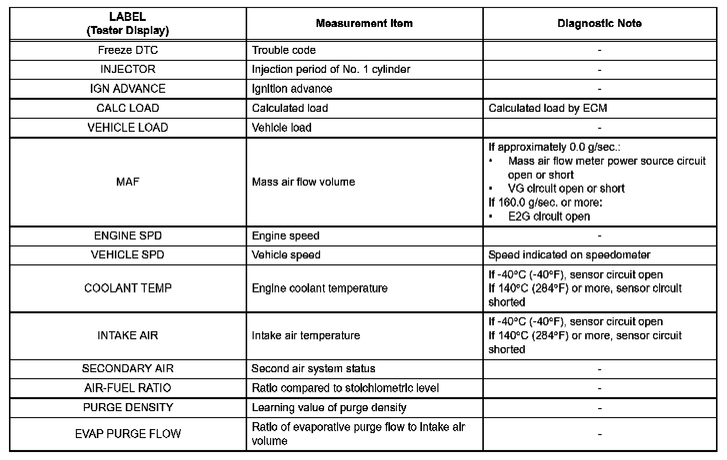 3. LIST OF FREEZE FRAME DATA (Using Techstream)