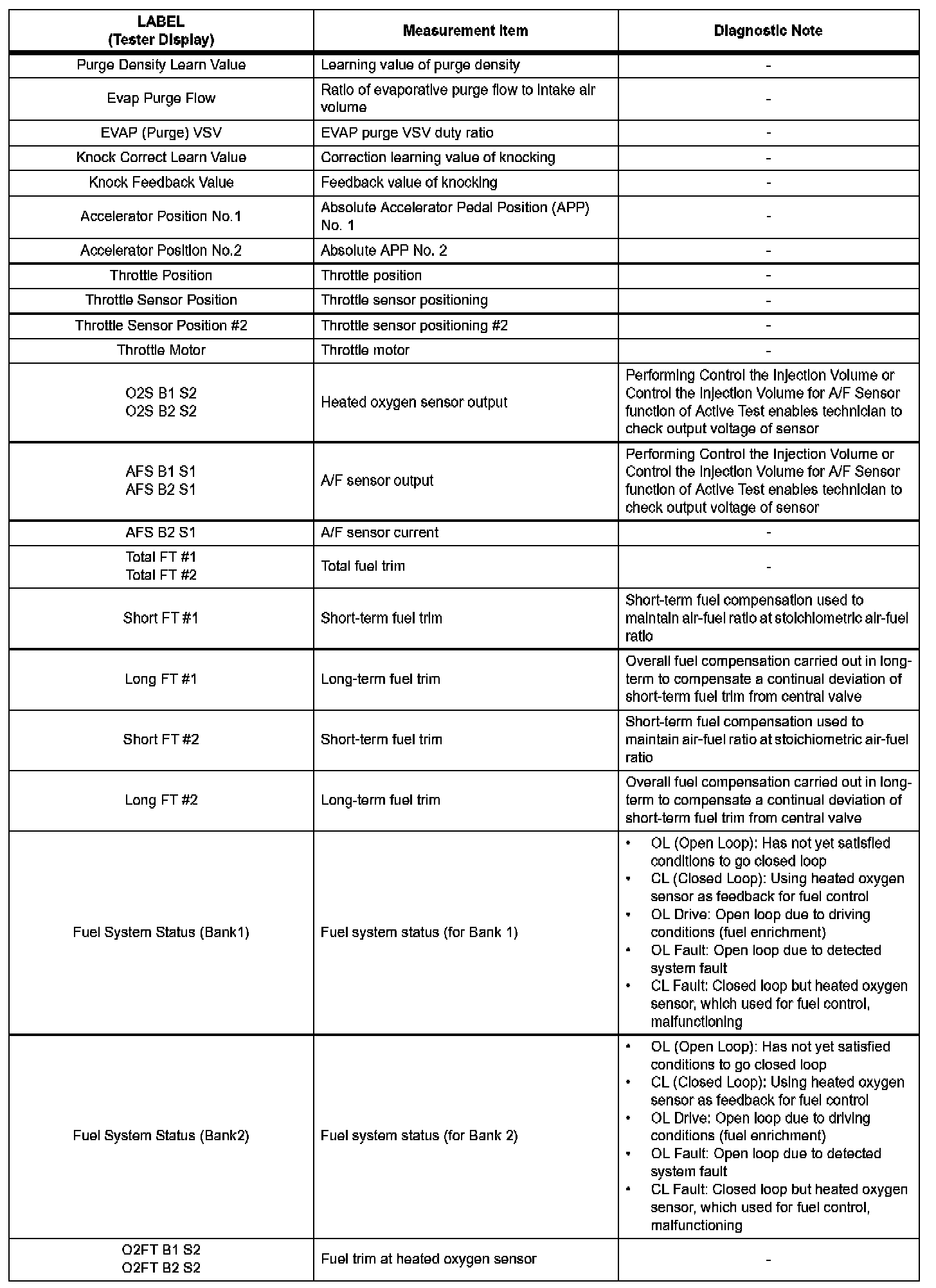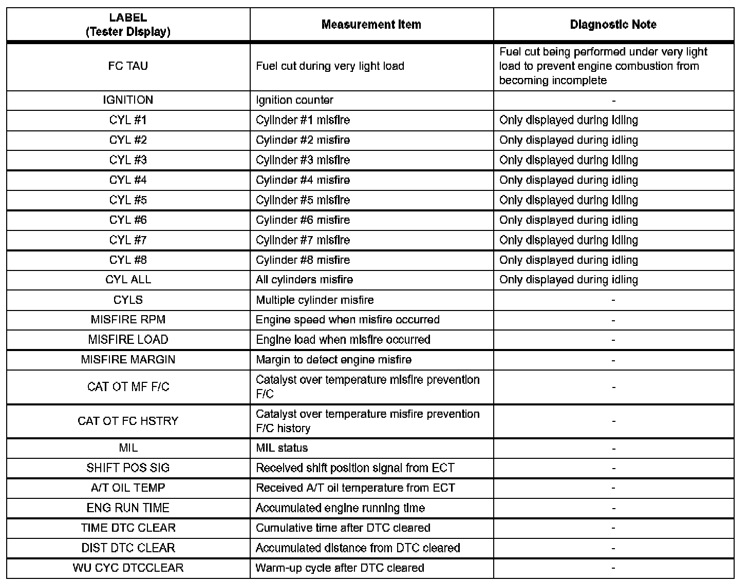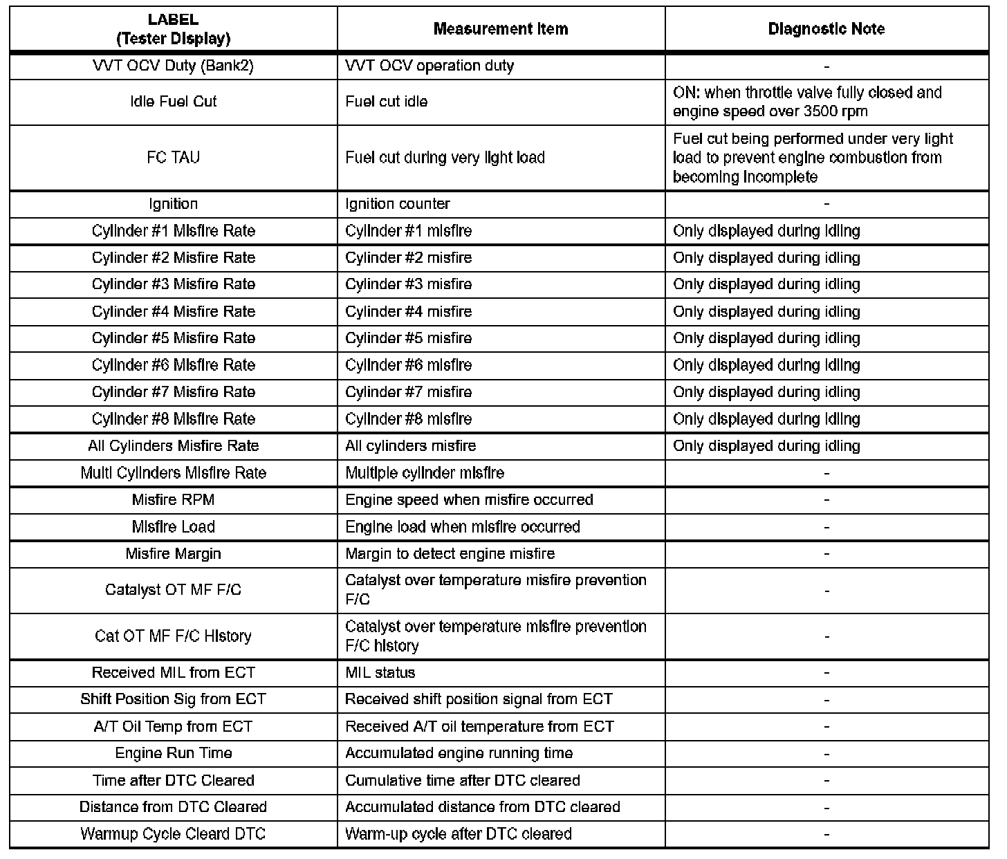 3. LIST OF FREEZE FRAME DATA (Using Techstream)