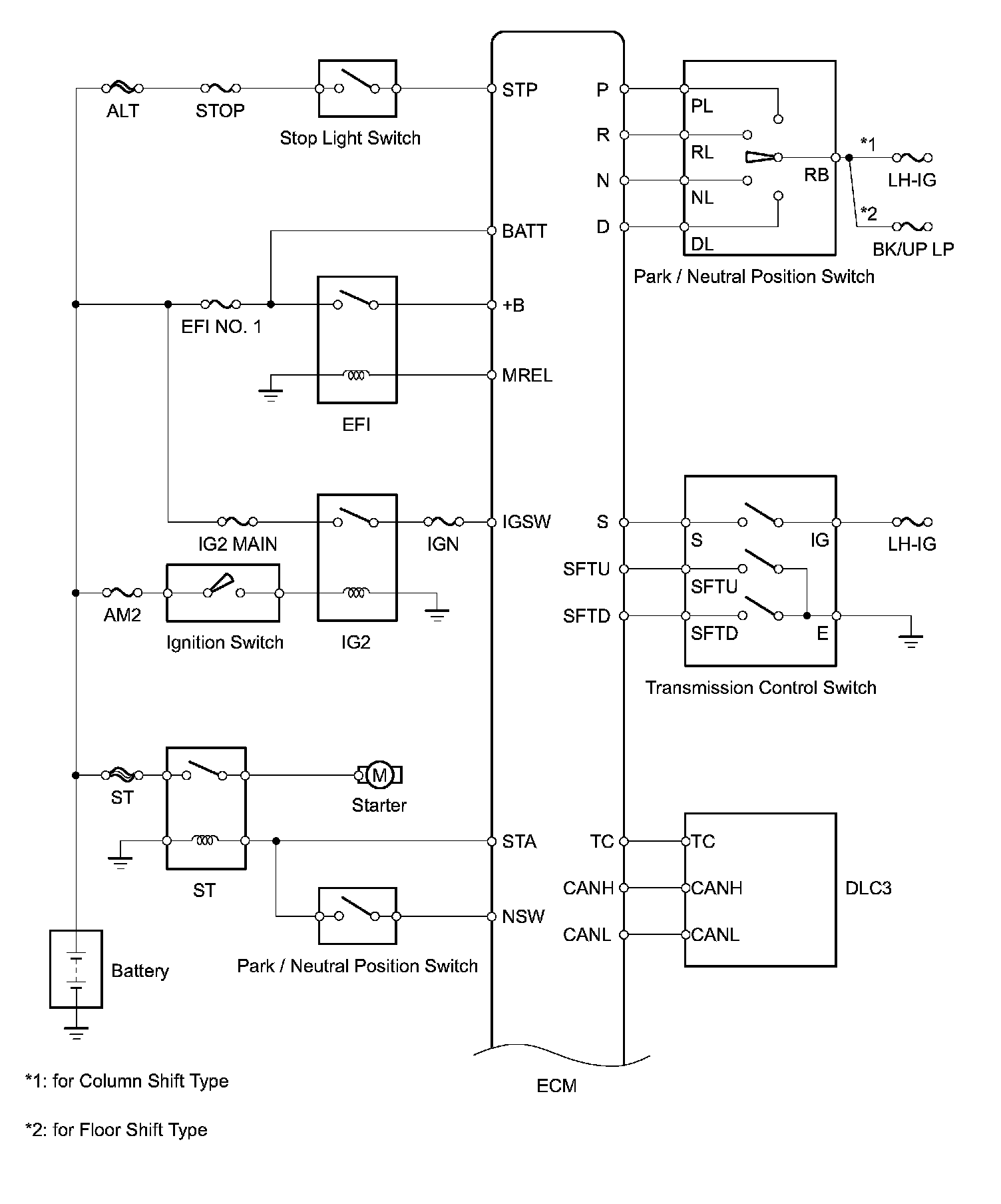 SYSTEM DIAGRAMThe configuration of the electronic control system in the A750E automatic transmission is as shown in the following chart.
