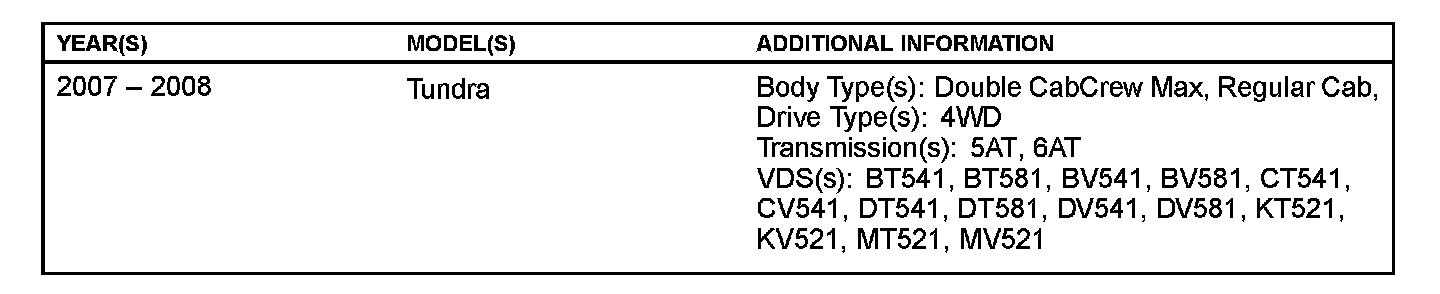 Refer to the Technical Information System (TIS) 2007 or 2008 model year Tundra Repair Manual: