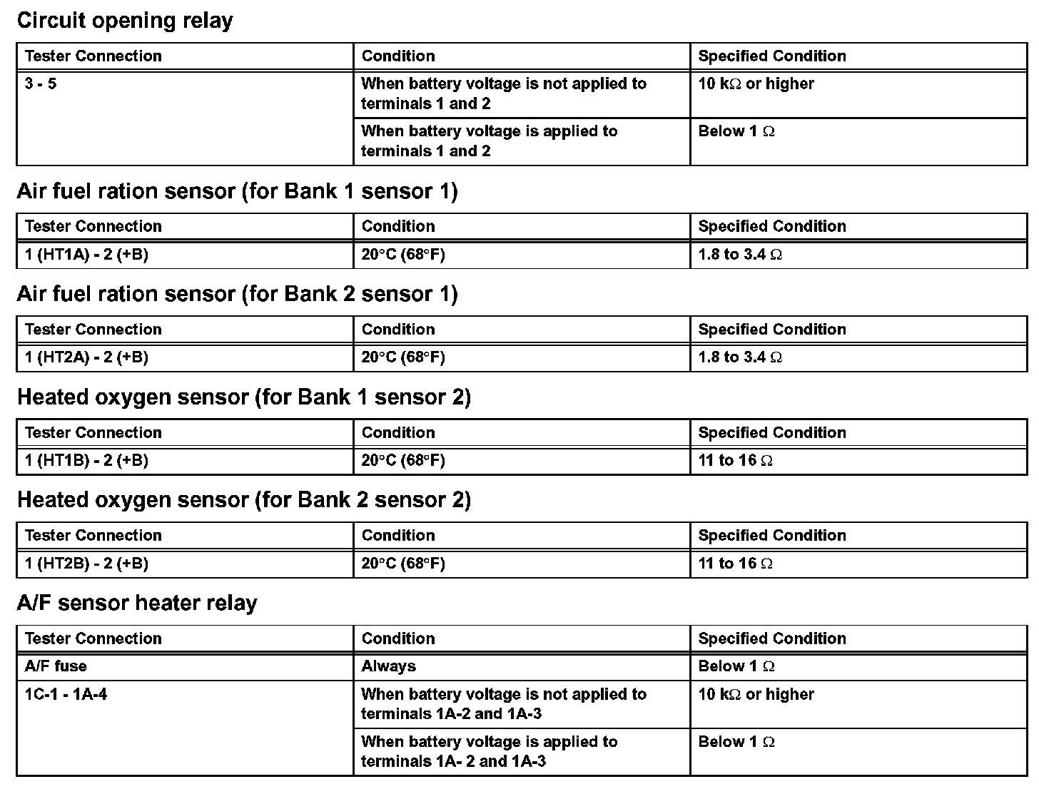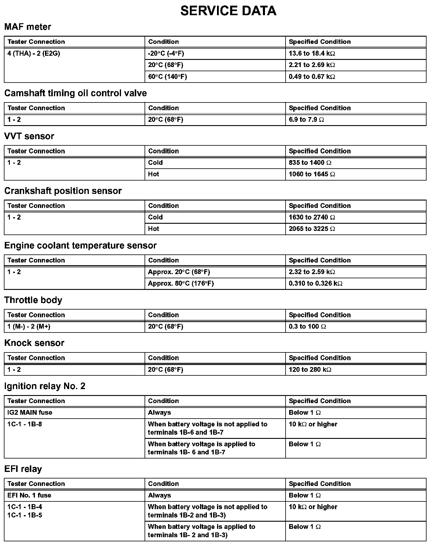 Engine Control System - Service Data (Part 1):