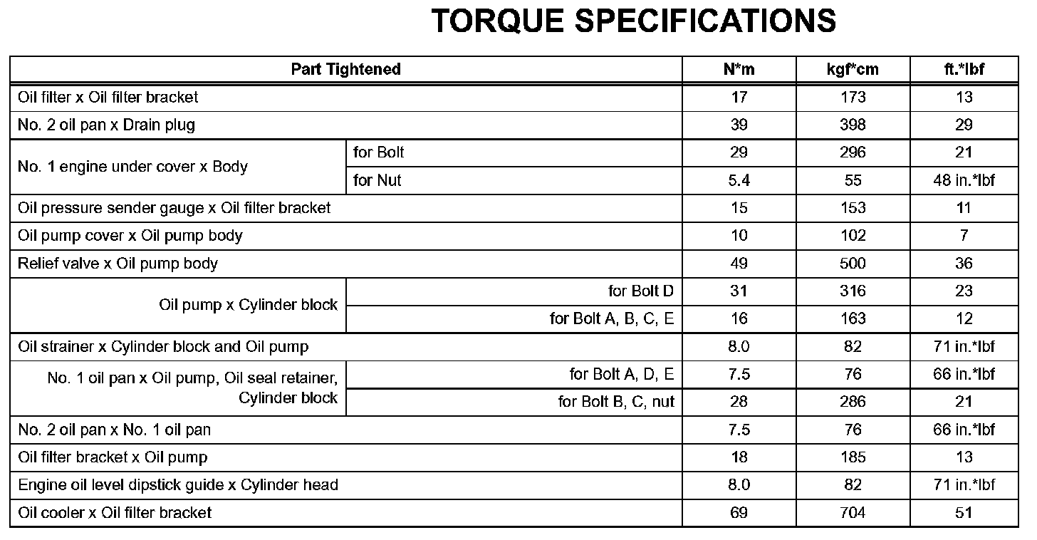 Lubrication - Torque Specifications:
